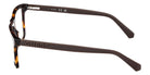 The third number — the temple length — is the length of the "stems" of the frame, measured from the frame hinge to the back tip of the temple. Temple lengths generally range from 120 mm to 150 mm.