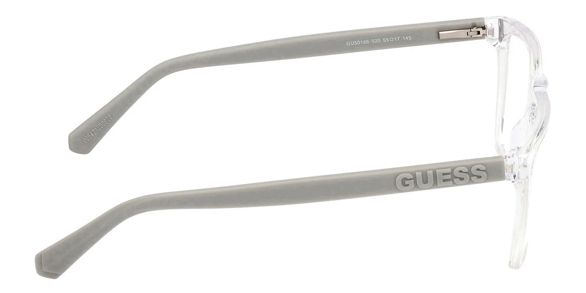 GU50186 Eyeglasses by Guess™. The rectangle shape design feature a full rim plastic frame. This model is available in four different color combinations and sizes. The GUESS company was founded in 1981 by the Marciano brothers and over a short period it has evolved into a well-known brand that produces clothing, footwear, accessories and perfumes. Initially, the founders focused exclusively on the designs and tailoring of denim clothing, which brought considerable success. Perhaps the secret of popularity is that GUESS products are intended not only for the highest society - absolutely everyone can afford the things of this brand. Glasses created by the brand's designers are no less in demand among urban fashionistas around the world. Optical collections combine both classics of style and innovative technologies as well as modern quality materials. The variety of shapes, patterns and colors of GUESS eyewear undoubtedly adds the finishing touch to any look.