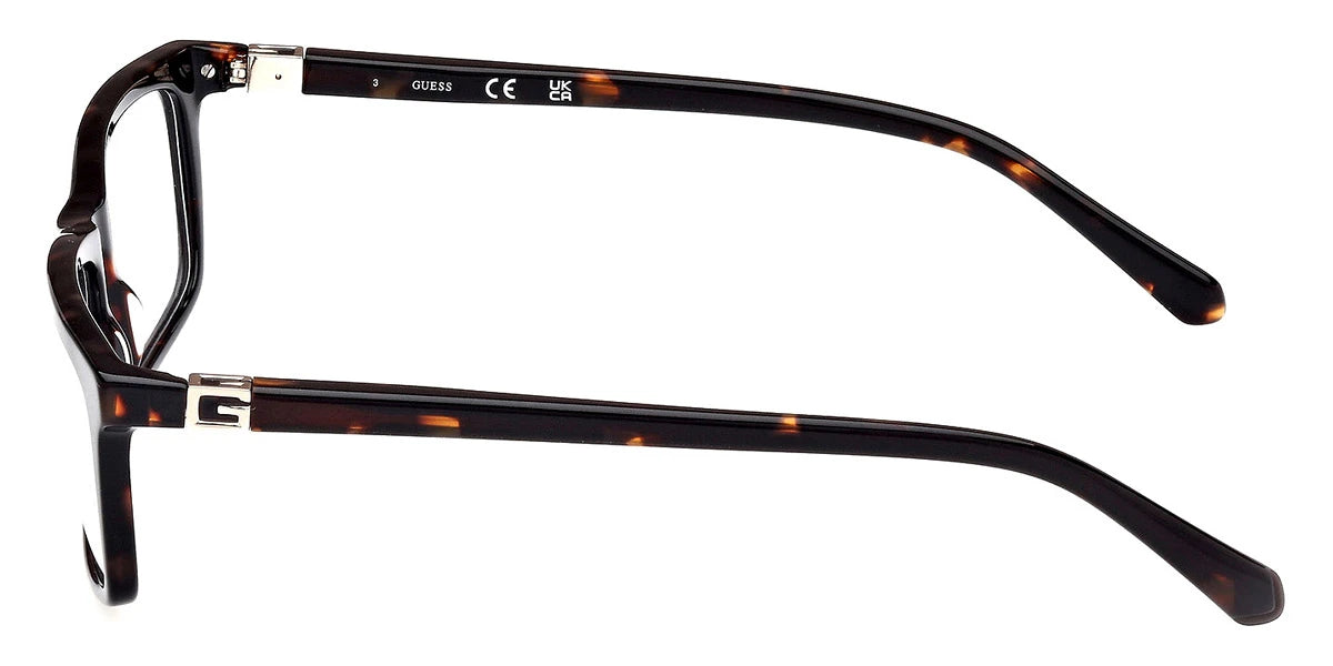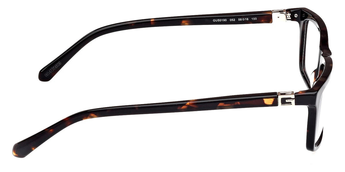 Dark Havana (052) Eyeglasses (GU50190 052 56) by Guess™. Size: 56-16-150, Shape: Rectangle, Material: Plastic.