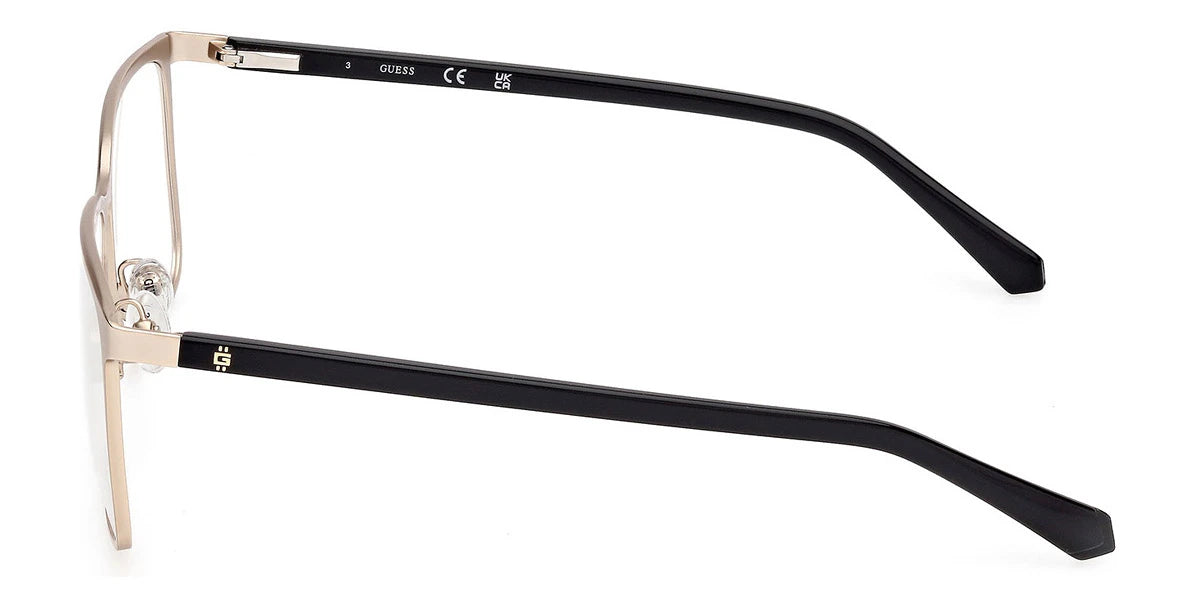 GU50193 Eyeglasses by Guess™. The rectangle shape design feature a full rim metal frame. This model is available in three different color combinations and sizes. The GUESS company was founded in 1981 by the Marciano brothers and over a short period it has evolved into a well-known brand that produces clothing, footwear, accessories and perfumes. Initially, the founders focused exclusively on the designs and tailoring of denim clothing, which brought considerable success. Perhaps the secret of popularity is that GUESS products are intended not only for the highest society - absolutely everyone can afford the things of this brand. Glasses created by the brand's designers are no less in demand among urban fashionistas around the world. Optical collections combine both classics of style and innovative technologies as well as modern quality materials. The variety of shapes, patterns and colors of GUESS eyewear undoubtedly adds the finishing touch to any look.