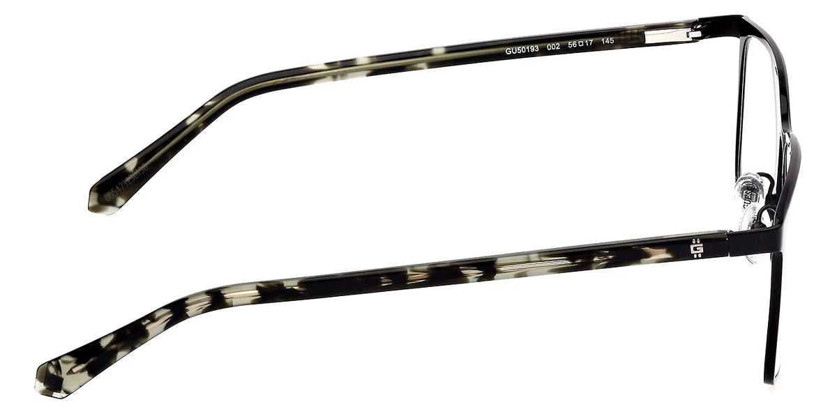 Matte Black/Dark Green/Havana (002) Eyeglasses (GU50193 002 56) by Guess™. Size: 56-17-145, Shape: Rectangle, Material: Metal.