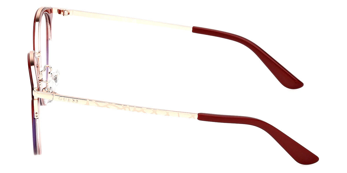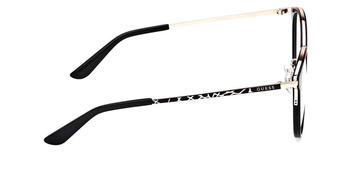 GU50201-D Eyeglasses by Guess™. The round shape design feature a full rim plastic frame. This model is available in three different color combinations and sizes. The GUESS company was founded in 1981 by the Marciano brothers and over a short period it has evolved into a well-known brand that produces clothing, footwear, accessories and perfumes. Initially, the founders focused exclusively on the designs and tailoring of denim clothing, which brought considerable success. Perhaps the secret of popularity is that GUESS products are intended not only for the highest society - absolutely everyone can afford the things of this brand. Glasses created by the brand's designers are no less in demand among urban fashionistas around the world. Optical collections combine both classics of style and innovative technologies as well as modern quality materials. The variety of shapes, patterns and colors of GUESS eyewear undoubtedly adds the finishing touch to any look.