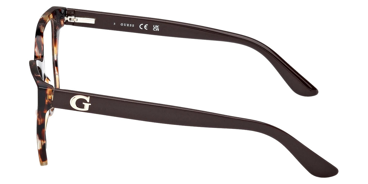 Dark Havana (052) Eyeglasses (GU50235 052 50) by Guess™. Size: 50-15-140, Shape: Square, Material: Plastic.