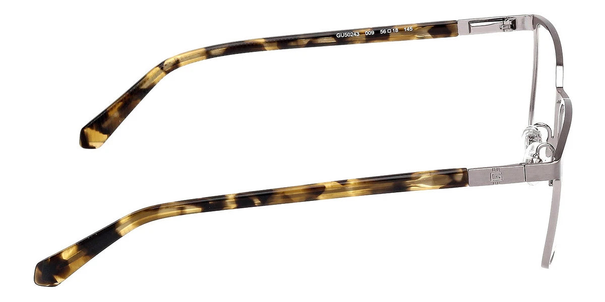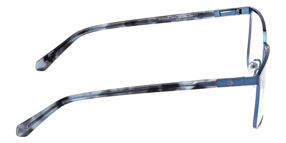 GU50243 Eyeglasses by Guess™. The square shape design feature a full rim metal frame. This model is available in eight different color combinations and sizes. The GUESS company was founded in 1981 by the Marciano brothers and over a short period it has evolved into a well-known brand that produces clothing, footwear, accessories and perfumes. Initially, the founders focused exclusively on the designs and tailoring of denim clothing, which brought considerable success. Perhaps the secret of popularity is that GUESS products are intended not only for the highest society - absolutely everyone can afford the things of this brand. Glasses created by the brand's designers are no less in demand among urban fashionistas around the world. Optical collections combine both classics of style and innovative technologies as well as modern quality materials. The variety of shapes, patterns and colors of GUESS eyewear undoubtedly adds the finishing touch to any look.