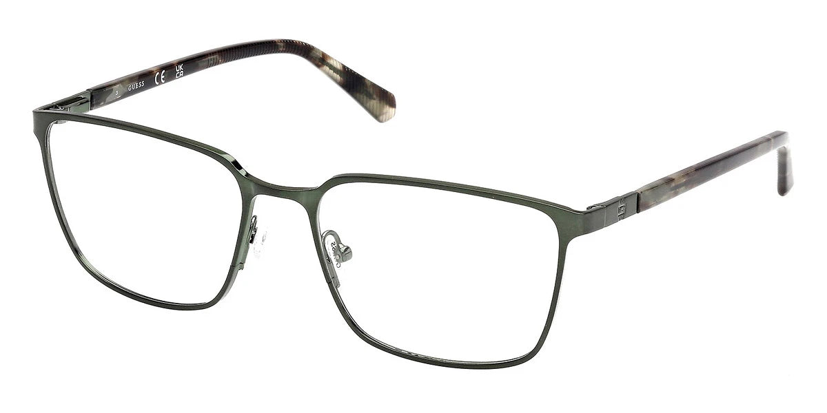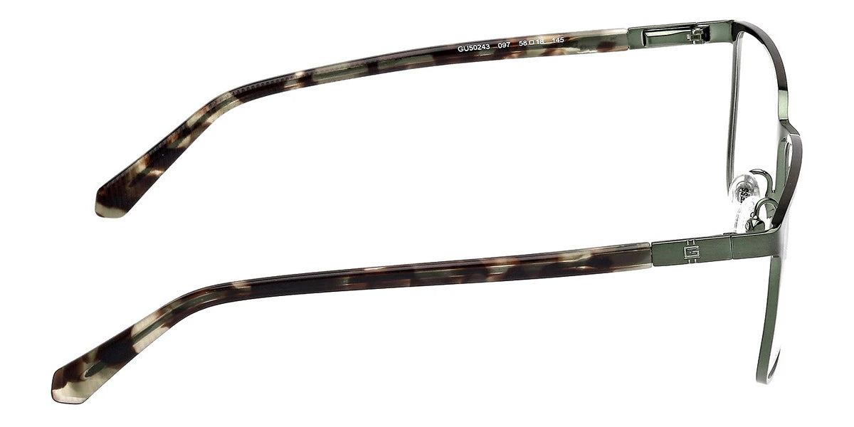 Shiny Dark Green/Matte Dark Green (097) Eyeglasses (GU50243 097 56) by Guess™. Size: 56-18-145, Shape: Square, Material: Metal.
