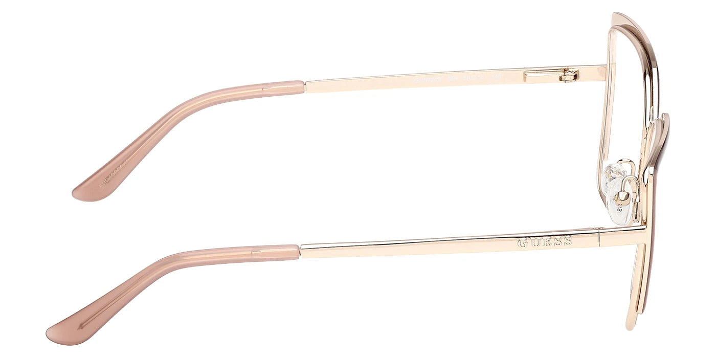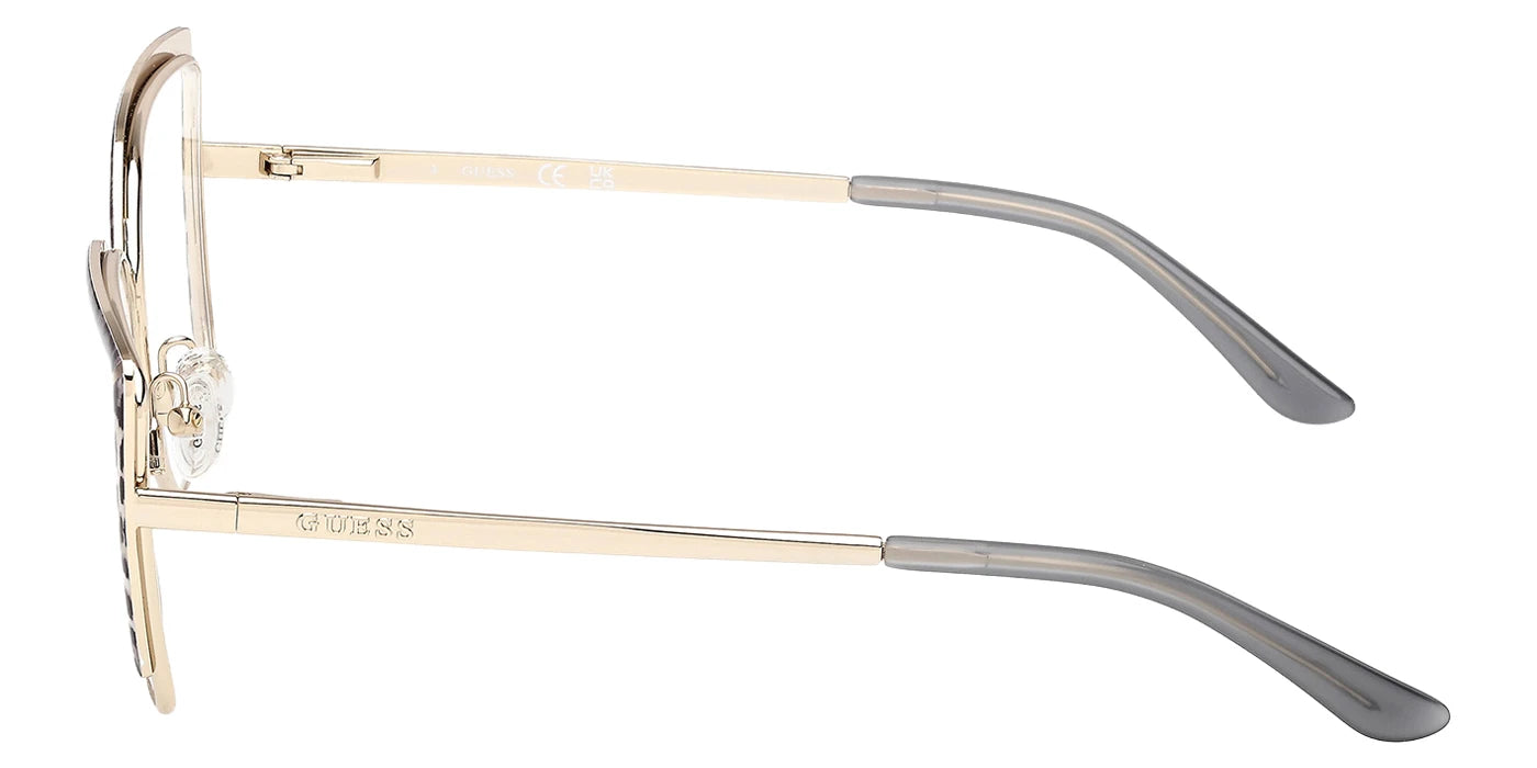 Shiny Pale Gold (033) Eyeglasses (GU50249 033 55) by Guess™. Size: 55-14-140, Shape: Square, Material: Metal.