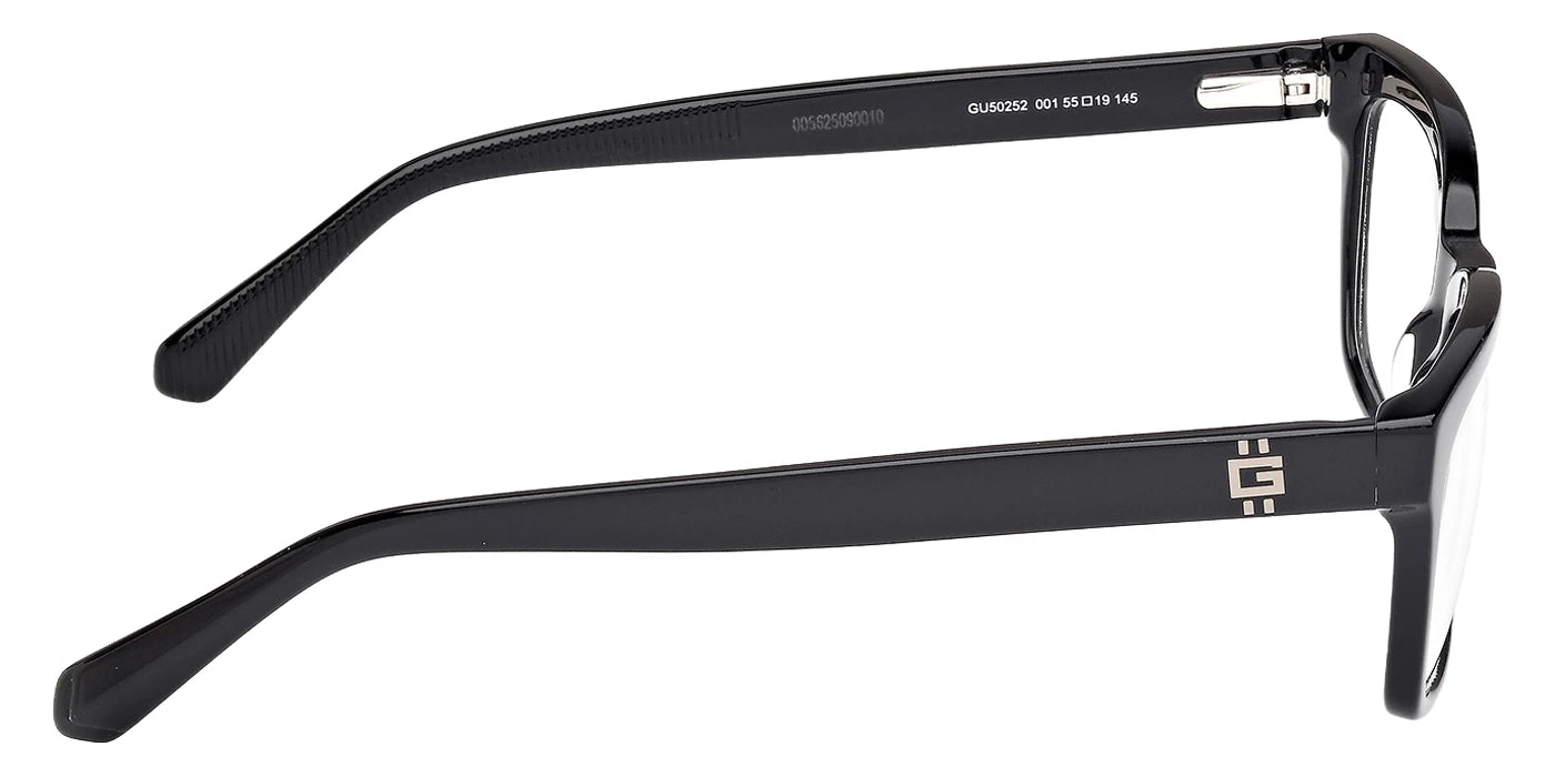 Shiny Black (001) Eyeglasses (GU50252 001 55) by Guess™. Size: 55-19-145, Shape: Rectangle, Material: Plastic.