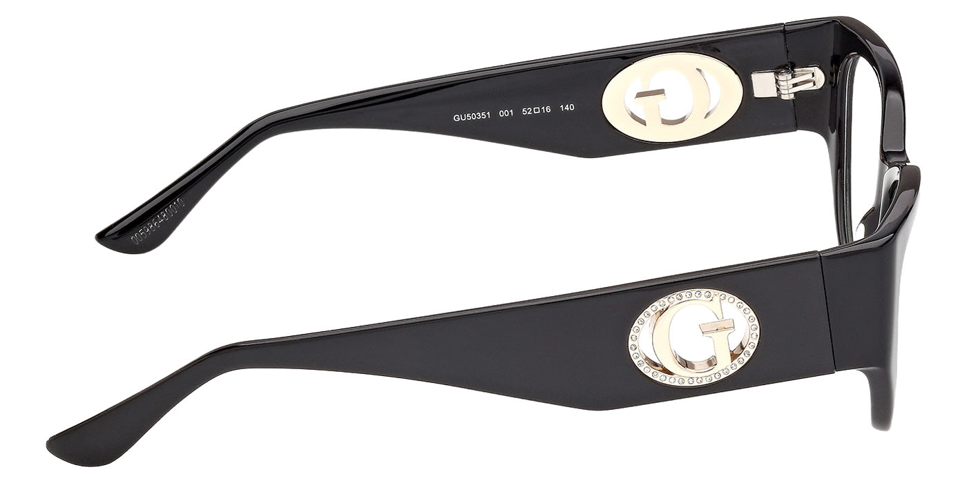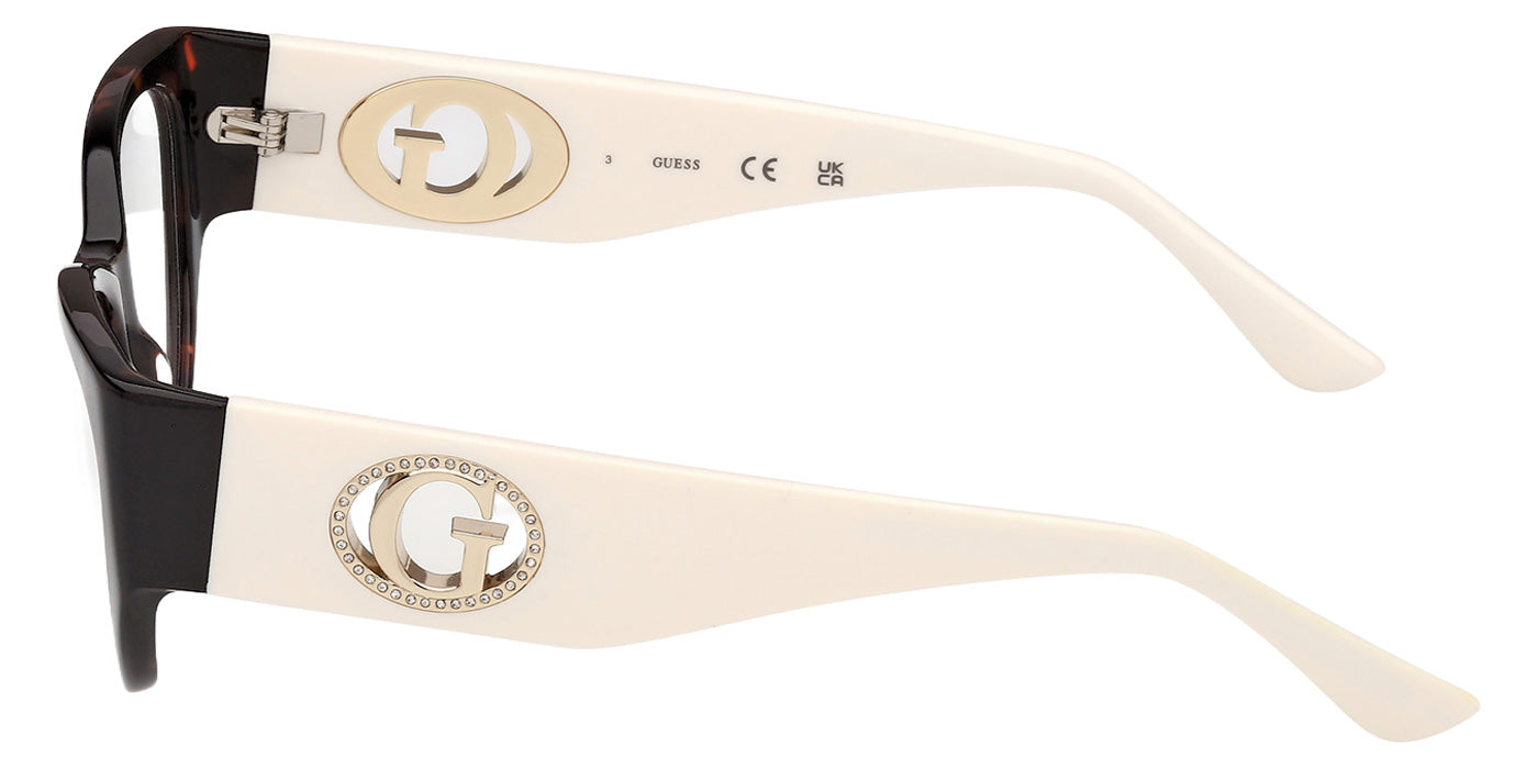 Dark Havana (052) Eyeglasses (GU50351 052 52) by Guess. Size: 52-16-140, Shape: Cat-Eye, Material: Plastic.