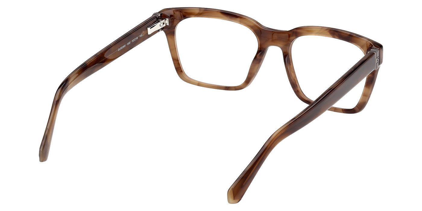 Gray/Horn (020) Eyeglasses (GU50365 020 53) by Guess. Size: 53-18-145, Shape: Rectangle, Material: Plastic.