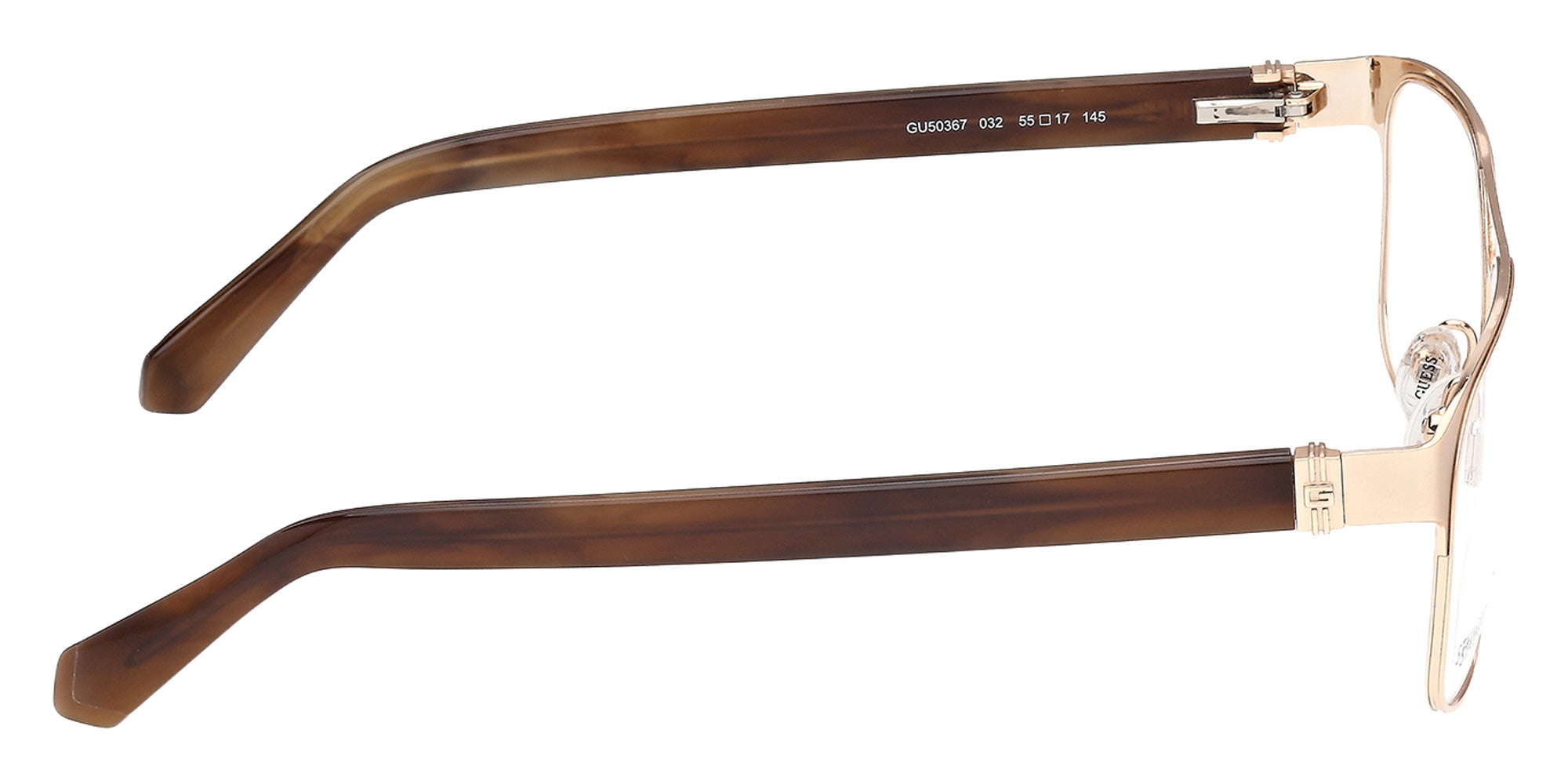 The aviator shape design feature a full rim metal frame. This model is available in three different color combinations and sizes. The GUESS company was founded in 1981 by the Marciano brothers and over a short period it has evolved into a well-known brand that produces clothing, footwear, accessories and perfumes. Initially, the founders focused exclusively on the designs and tailoring of denim clothing, which brought considerable success. Perhaps the secret of popularity is that GUESS products are intended not only for the highest society - absolutely everyone can afford the things of this brand. Glasses created by the brand's designers are no less in demand among urban fashionistas around the world. Optical collections combine both classics of style and innovative technologies as well as modern quality materials. The variety of shapes, patterns and colors of GUESS eyewear undoubtedly adds the finishing touch to any look.