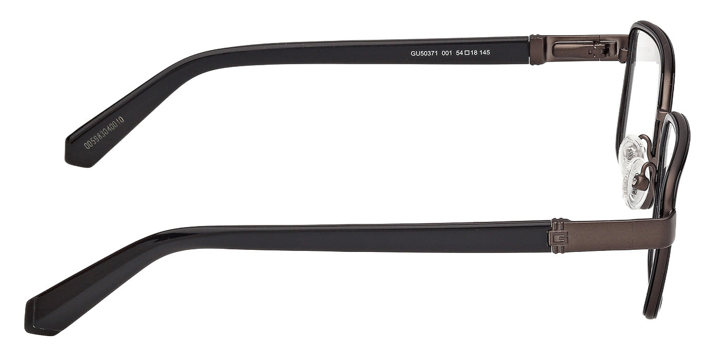 Shiny Black (001) Eyeglasses (GU50371 001 54) by Guess. Size: 54-18-145, Shape: Rectangle, Material: Metal.