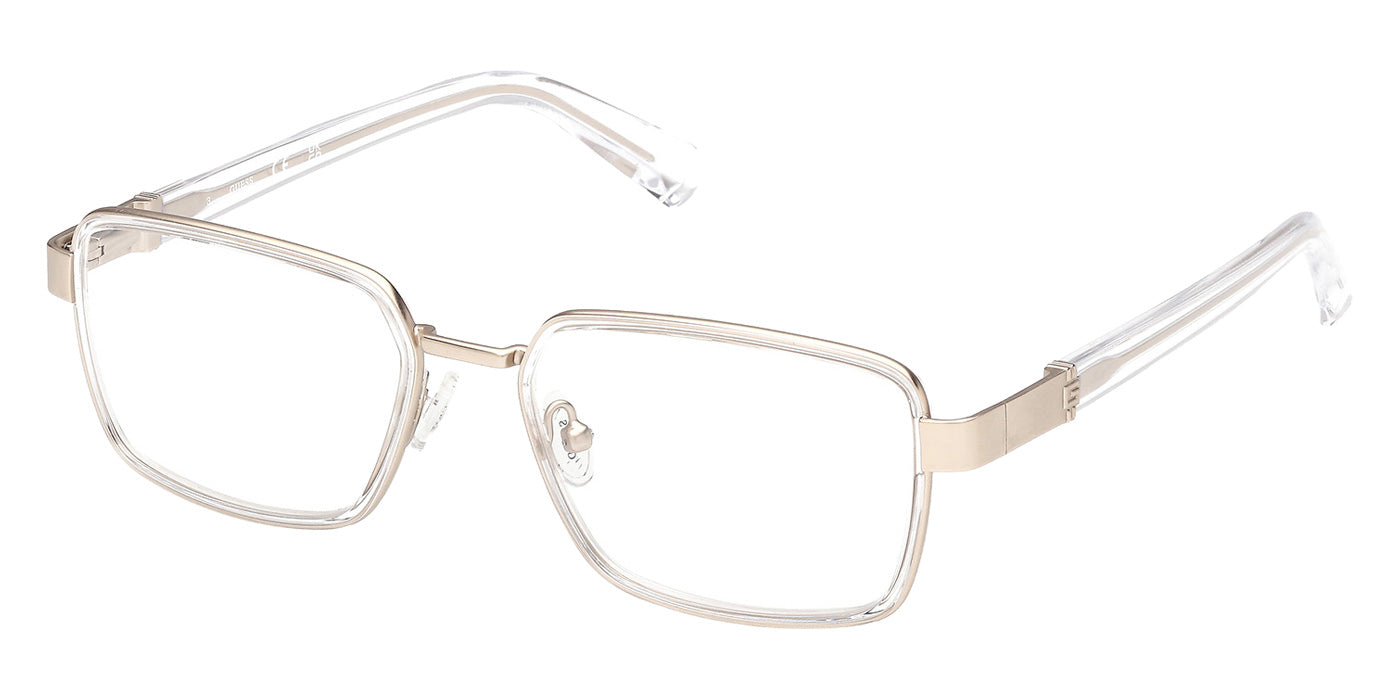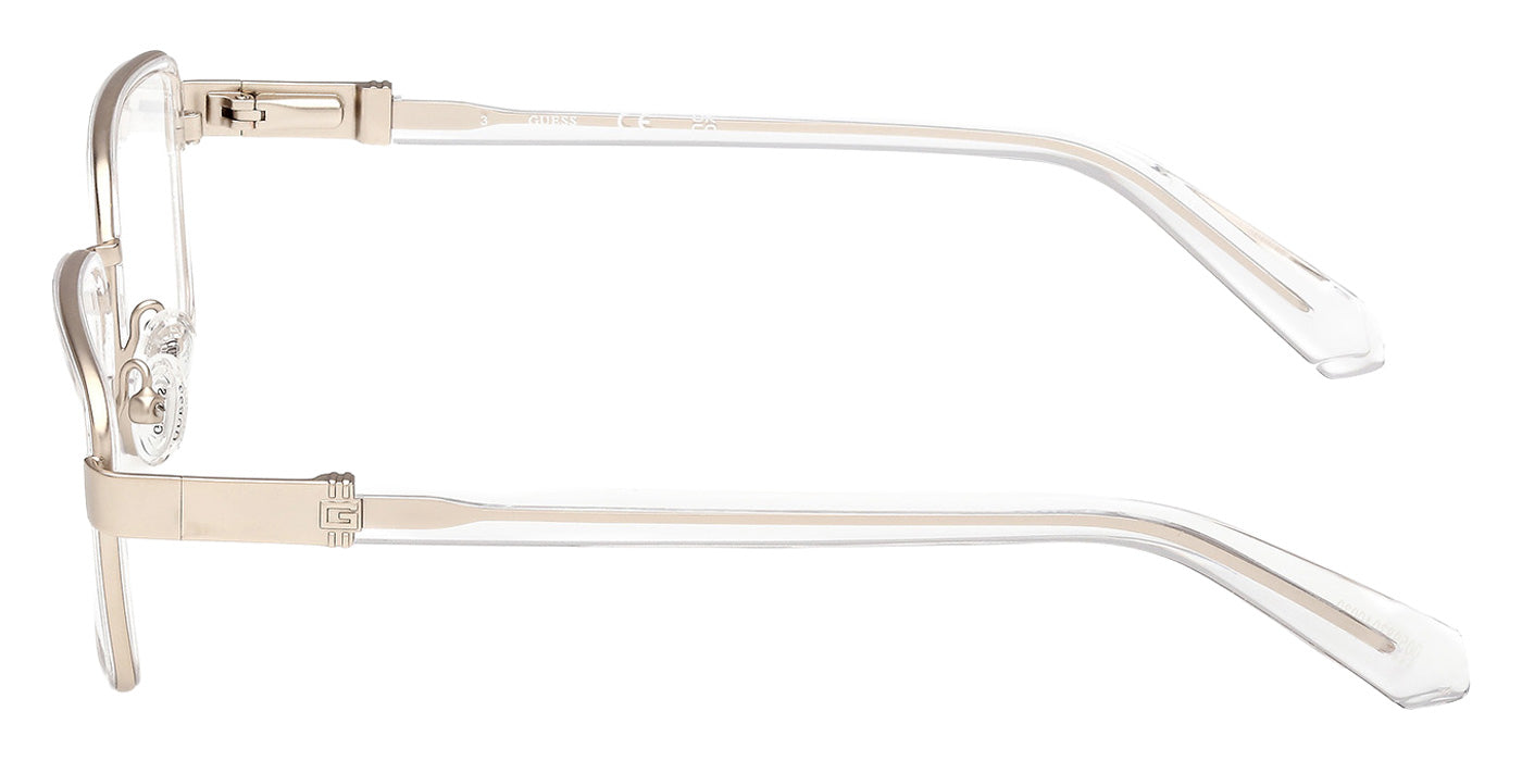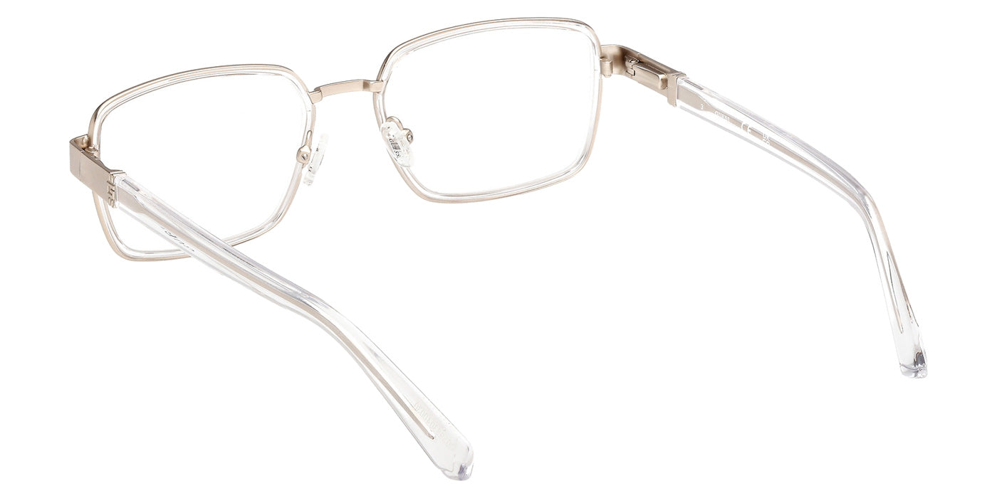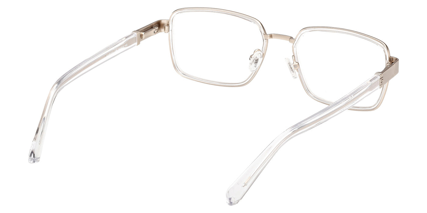 The rectangle shape desing feature a full rim metal frame. This model is available in four different color combinations and sizes. The GUESS company was founded in 1981 by the Marciano brothers and over a short period it has evolved into a well-known brand that produces clothing, footwear, accessories and perfumes. Initially, the founders focused exclusively on the designs and tailoring of denim clothing, which brought considerable success. Perhaps the secret of popularity is that GUESS products are intended not only for the highest society - absolutely everyone can afford the things of this brand. Glasses created by the brand's designers are no less in demand among urban fashionistas around the world. Optical collections combine both classics of style and innovative technologies as well as modern quality materials. The variety of shapes, patterns and colors of GUESS eyewear undoubtedly adds the finishing touch to any look.