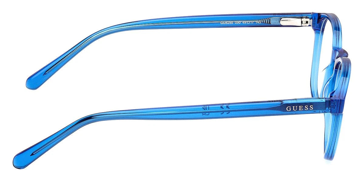 Shiny Blue (090) Eyeglasses (GU8290 090 49) by Guess™. Size: 49-17-145, Shape: Round, Material: Plastic.