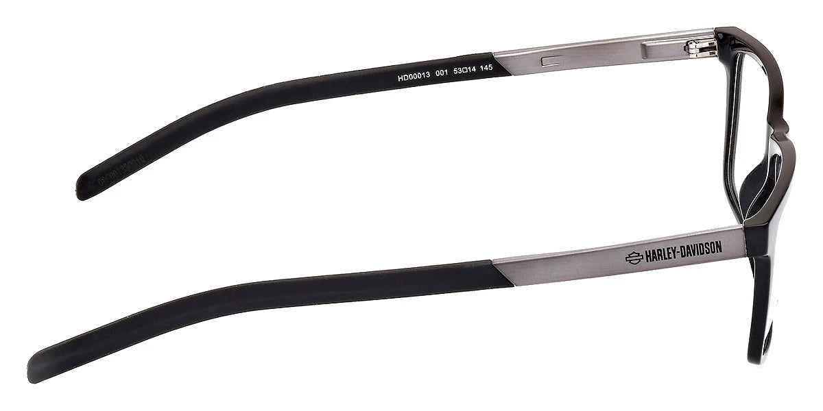 Shiny Black (001) Eyeglasses (HD00013 001 53) by Harley-Davidson™. Size: 53-14-145, Shape: Rectangle, Material: Injected.