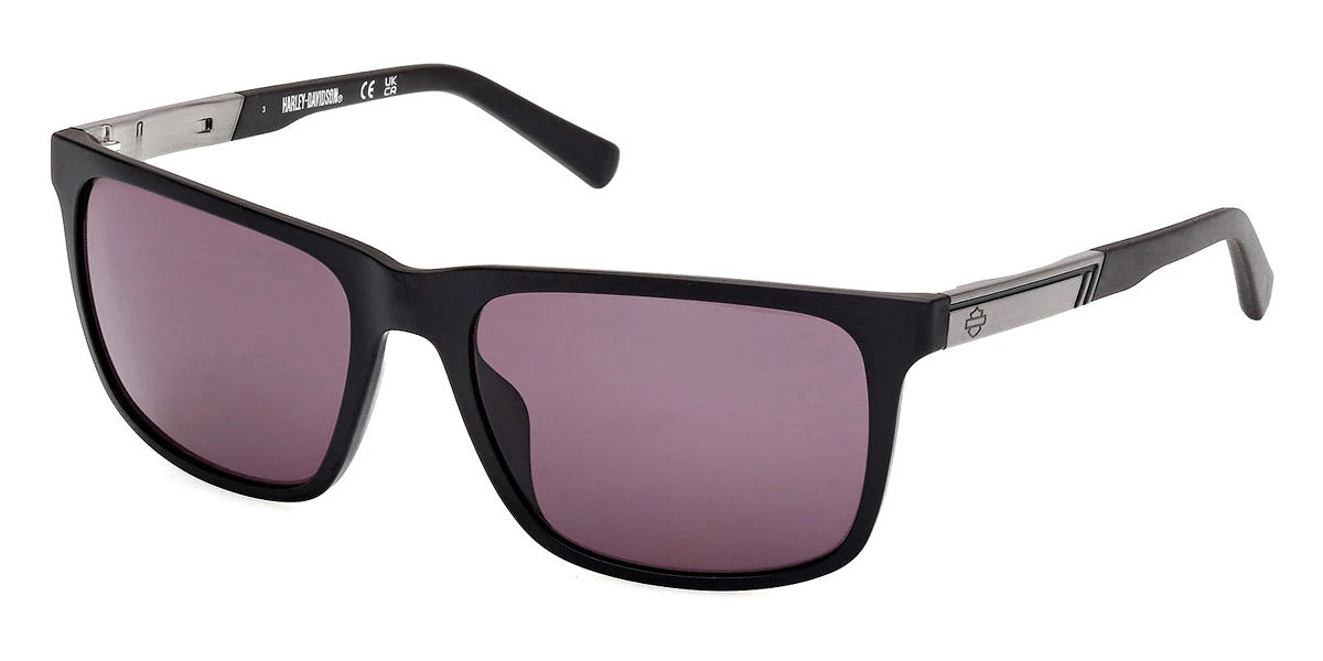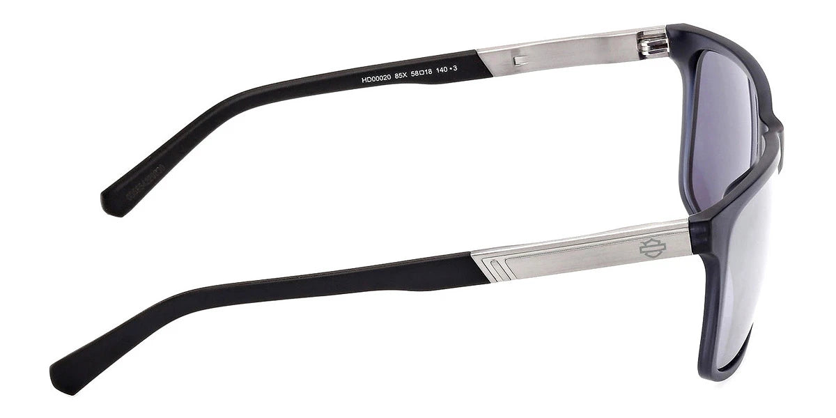 Matte Black (02A) Sunglasses with Smoke lenses (HD00020 02A 58) by Harley-Davidson™. Size: 58-18-140, Shape: Square, Material: Plastic.