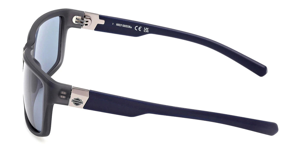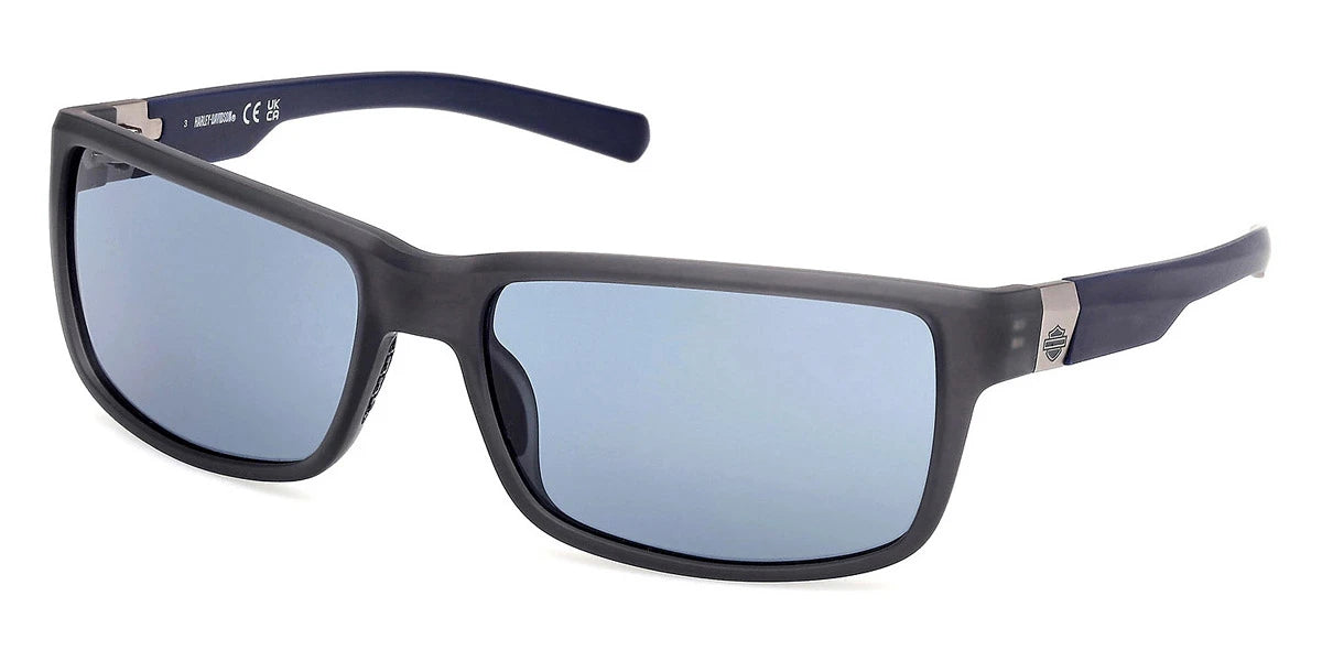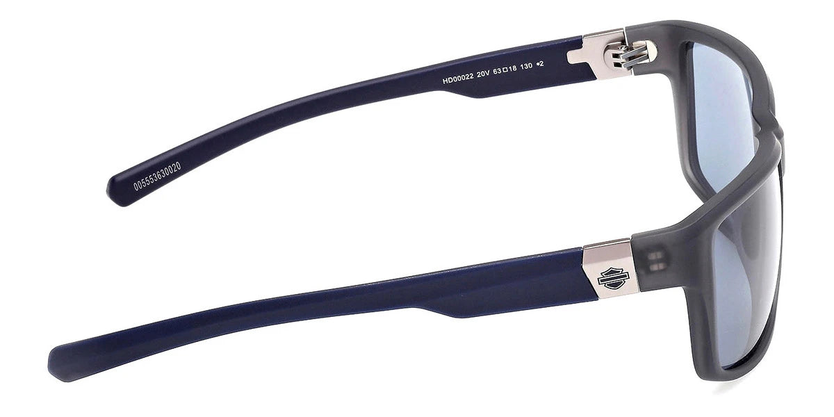 Matte Gray/Matte Blue (20V) Sunglasses with Blue lenses (HD00022 20V 63) by Harley-Davidson™. Size: 63-18-130, Shape: Rectangle, Material: Injected.
