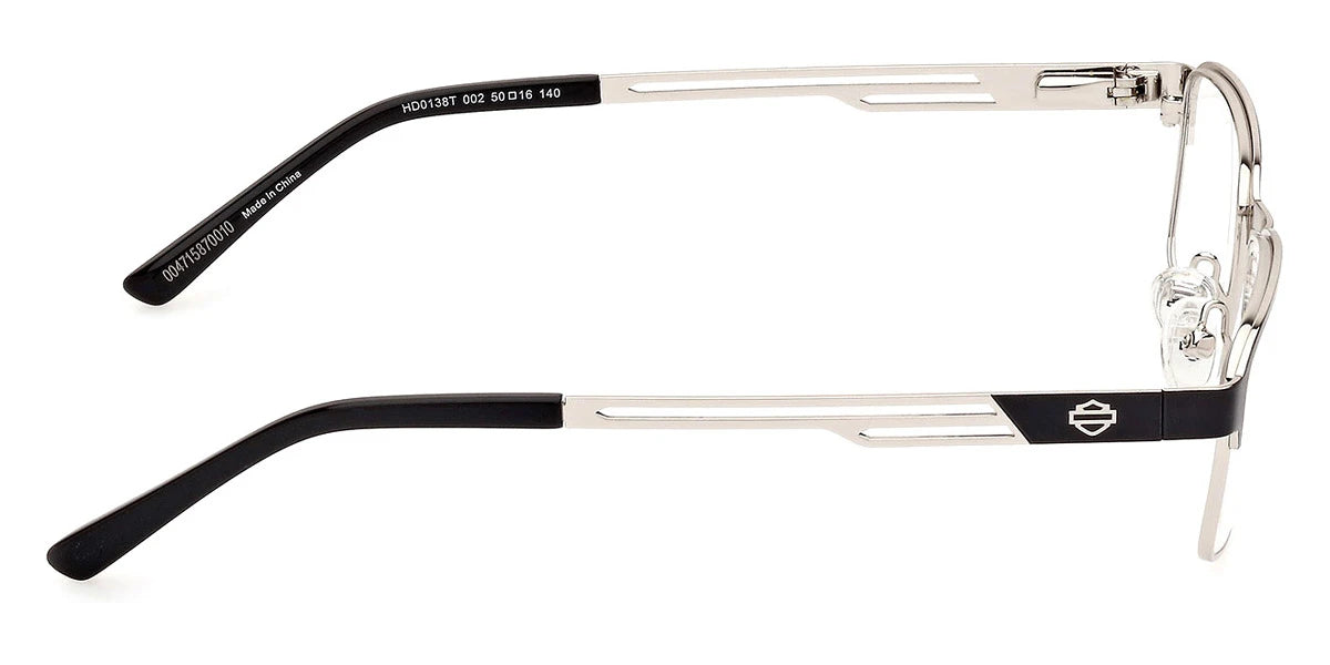 Matte Black (002) Eyeglasses (HD0138T 002 50) by Harley-Davidson™. Size: 50-16-140, Shape: Rectangle, Material: Metal.