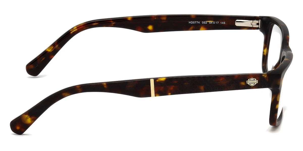 Dark Havana (052) Eyeglasses (HD0774 052 54) by Harley-Davidson™. Size: 54-17-145, Shape: Geometric, Material: Plastic.