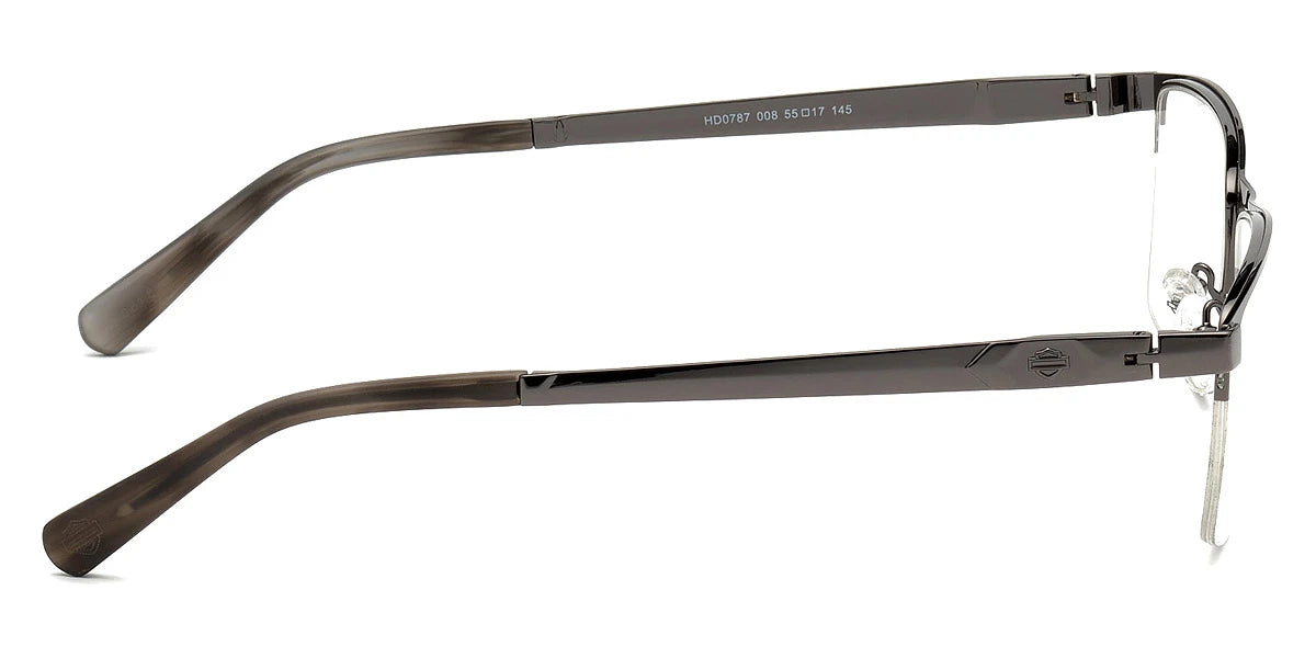 Shiny Gunmetal (008) Eyeglasses (HD0787 008 55) by Harley-Davidson™. Size: 55-17-145, Shape: Geometric, Material: Metal.