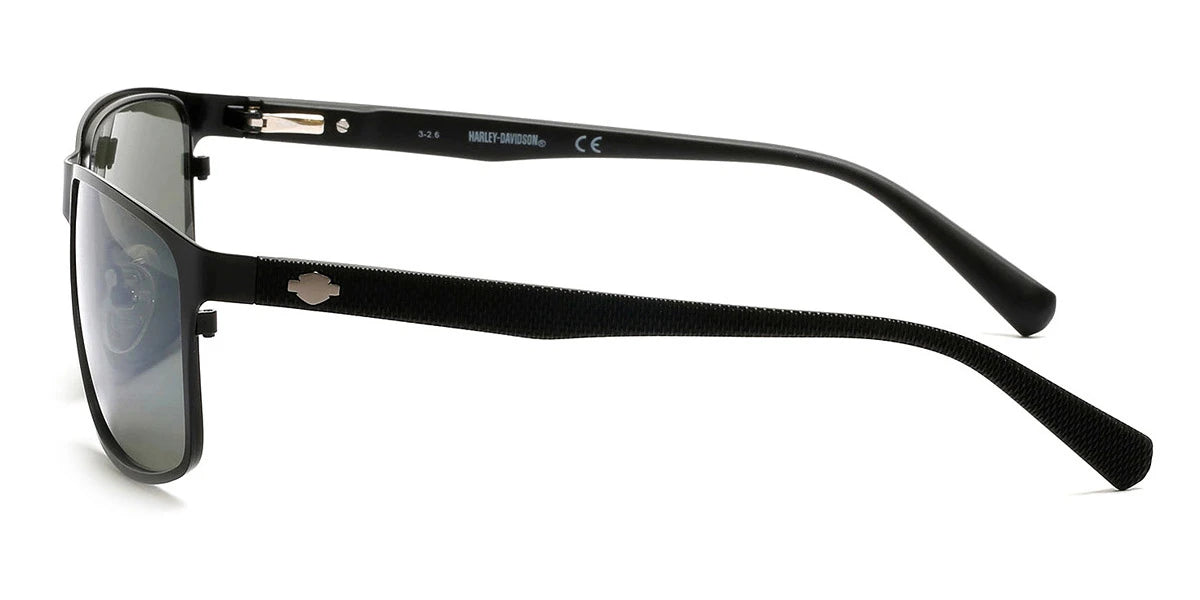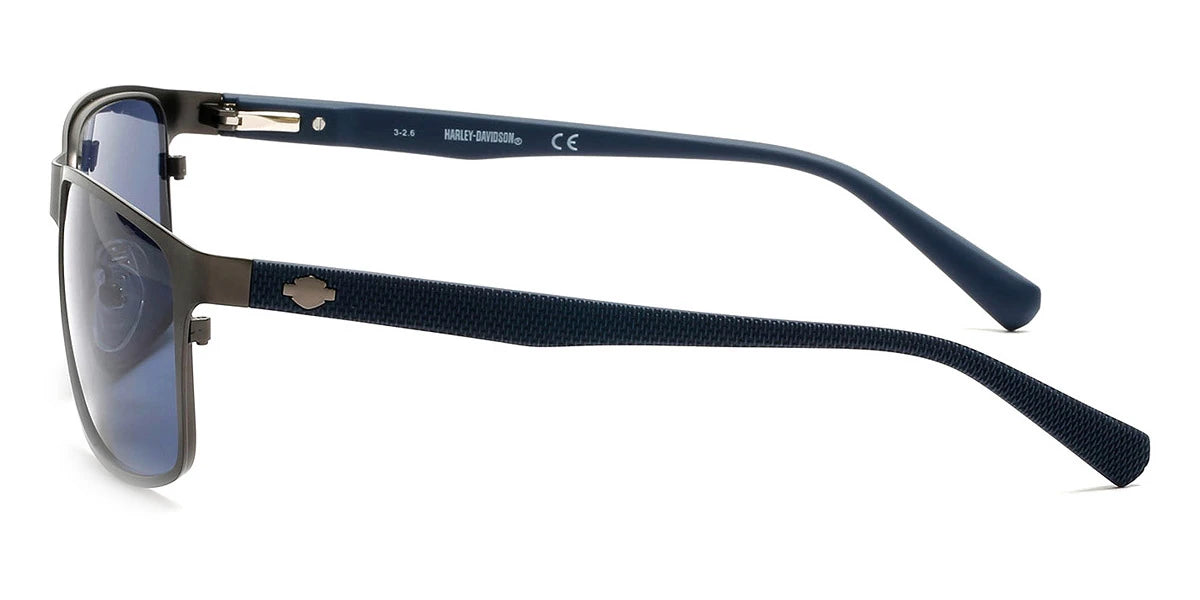 Matte Gunmetal (09V) Sunglasses with Blue lenses (HD0914X 09V 60) by Harley-Davidson™. Size: 60-16-140, Shape: Rectangle, Material: Metal.