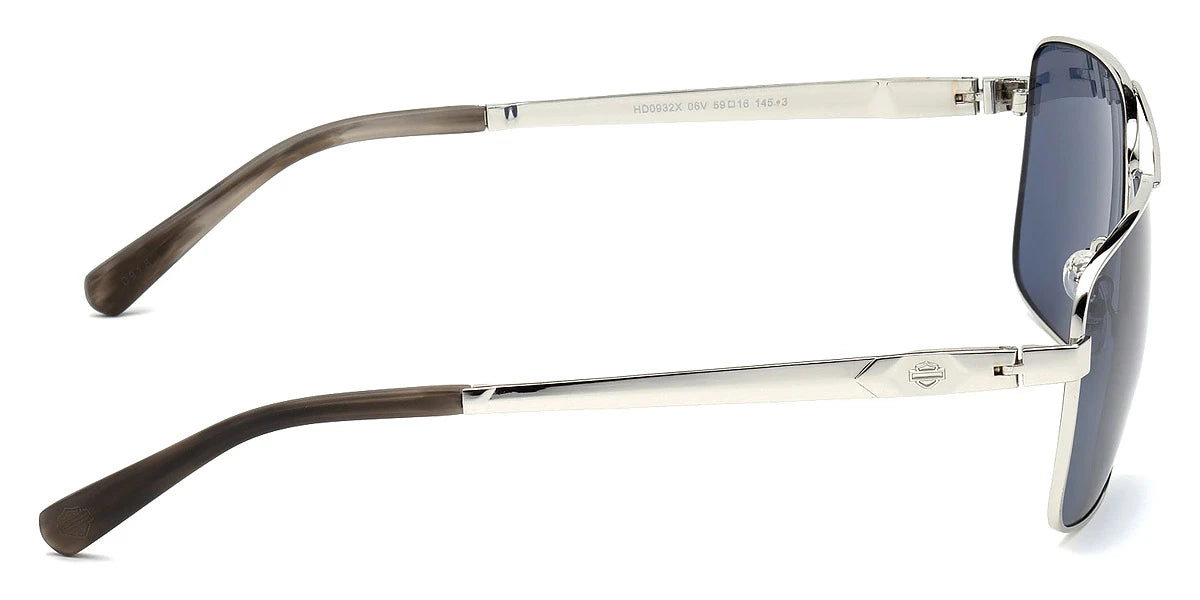 Shiny Dark Nickeltin (06V) Sunglasses with Blue lenses (HD0932X 06V 59) by Harley-Davidson™. Size: 59-16-145, Shape: Geometric, Material: Metal.