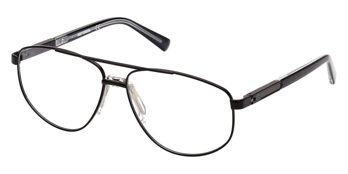 Matte Black (002) Eyeglasses (HD0977 002 59) by Harley-Davidson™. Size: 59-14-140, Shape: Aviator, Material: Metal.