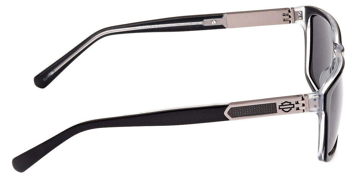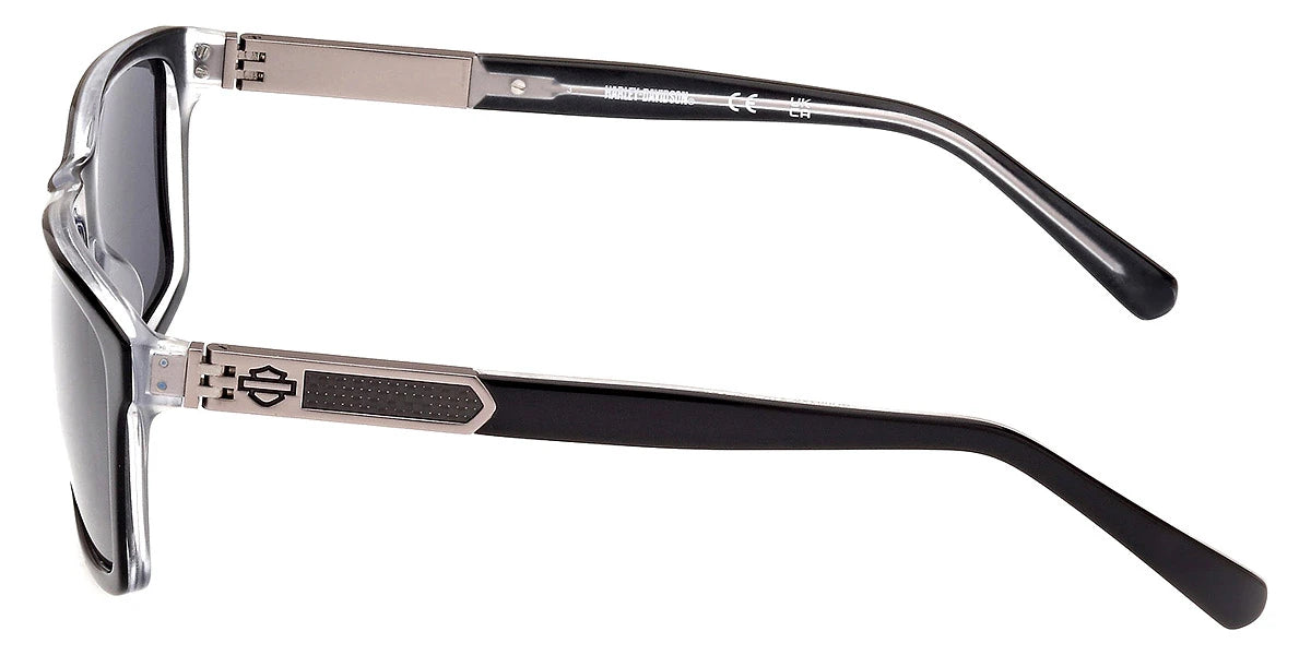 Shiny Black (01D) Sunglasses with Smoke Polarized lenses (HD0977X 01D 59) by Harley-Davidson™. Size: 59-15-145, Shape: Rectangle, Material: Plastic.