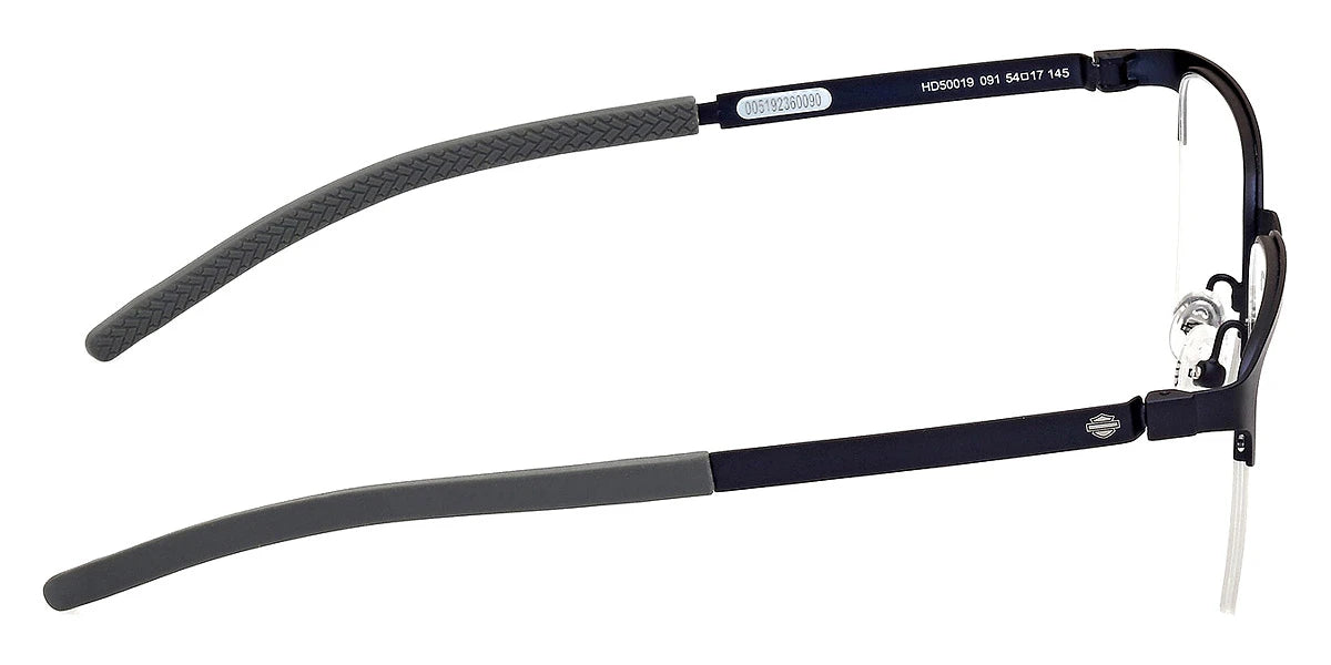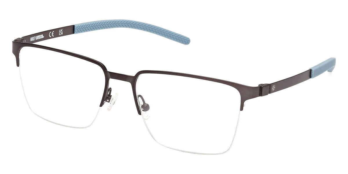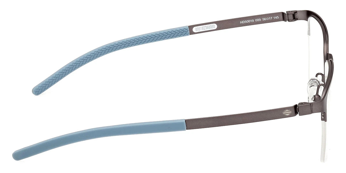 Matte Gunmetal (009) Eyeglasses (HD50019 009 54) by Harley-Davidson™. Size: 54-17-145, Shape: Rectangle, Material: Metal.