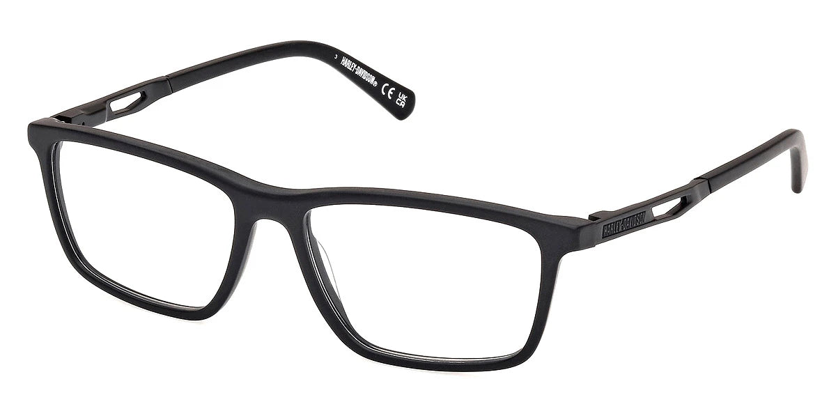 Matte Black (002) Eyeglasses (HD50026 002 55) by Harley-Davidson™. Size: 55-16-145, Shape: Rectangle, Material: Plastic.