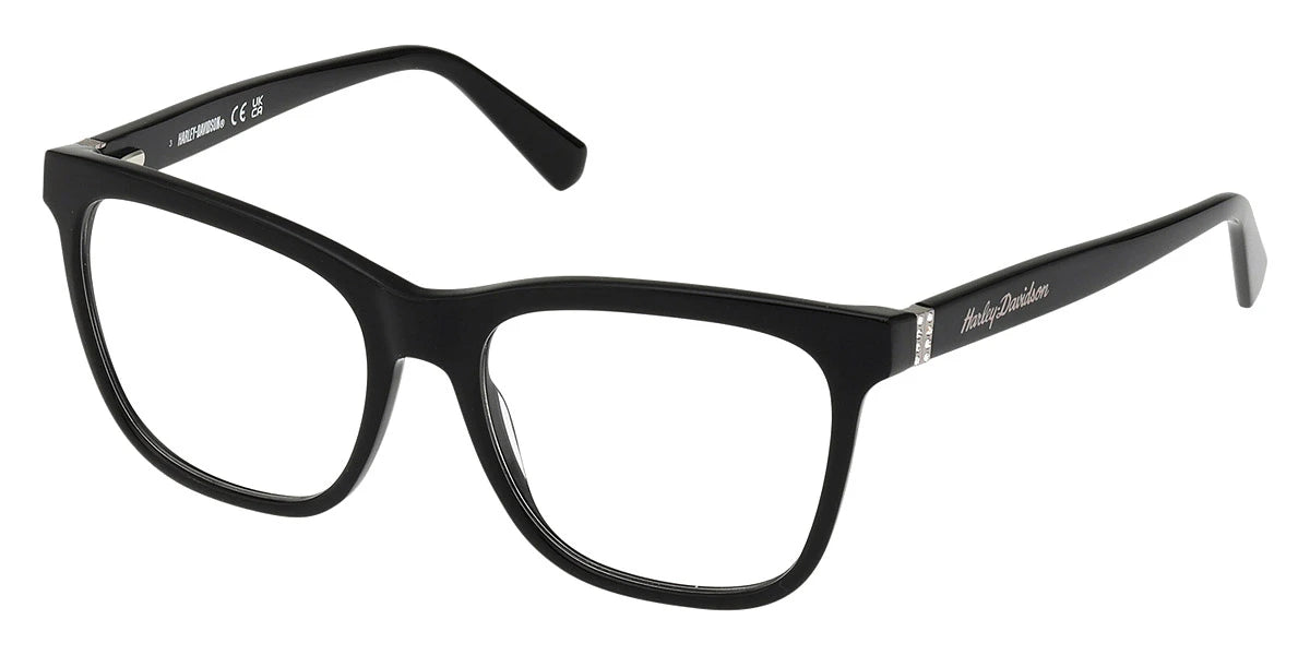 Shiny Black (001) Eyeglasses (HD50055 001 53) by Harley-Davidson™. Size: 53-17-140, Shape: Square, Material: Plastic.