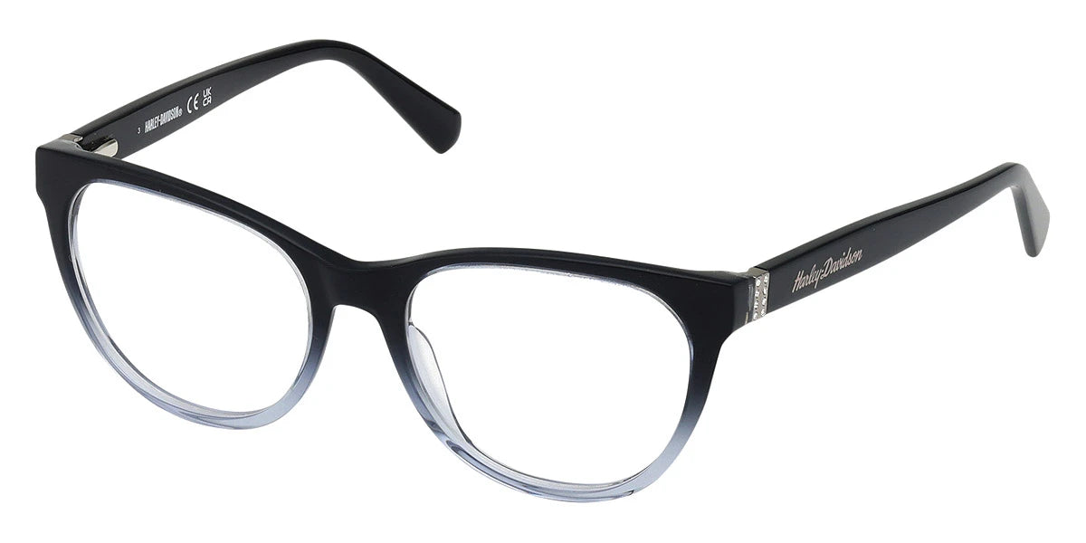 Blue/Gradient (092) Eyeglasses (HD50056 092 51) by Harley-Davidson™. Size: 51-17-140, Shape: Round, Material: Plastic.