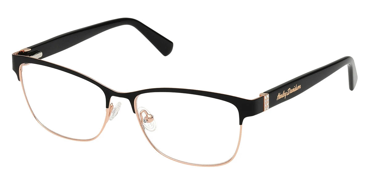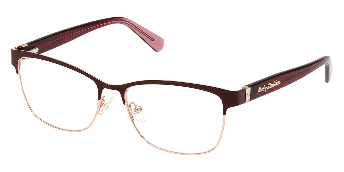 HD50057 Eyeglasses by Harley-Davidson™. The rectangle shape design feature a full rim metal frame. This model is available in three different color combinations and sizes. For over 100 years, the Harley-Davidson brand has been a symbol of freedom and the embodiment of dreams about road and travel, about freedom of choice and the realisation of the most daring ideas and desires. The days when Harley-Davidson just sold motorcycles are long gone. Indeed, now under the name of the brand, clothes and accessories are produced, created according to the highest class in terms of the strength of materials and ease of use. These are key characteristics of the Harley-Davidson frames and sunglasses collections. Fashionable sporty glasses and models of the restrained classic style from a well-known brand provide reliable eye protection and a high level of comfort. Harley-Davidson sunglasses are a stylish accessory which looks cool not only for riding a motorcycle but also in everyday life.