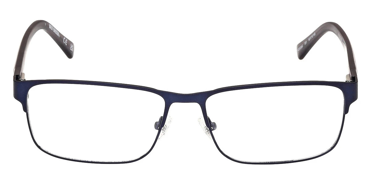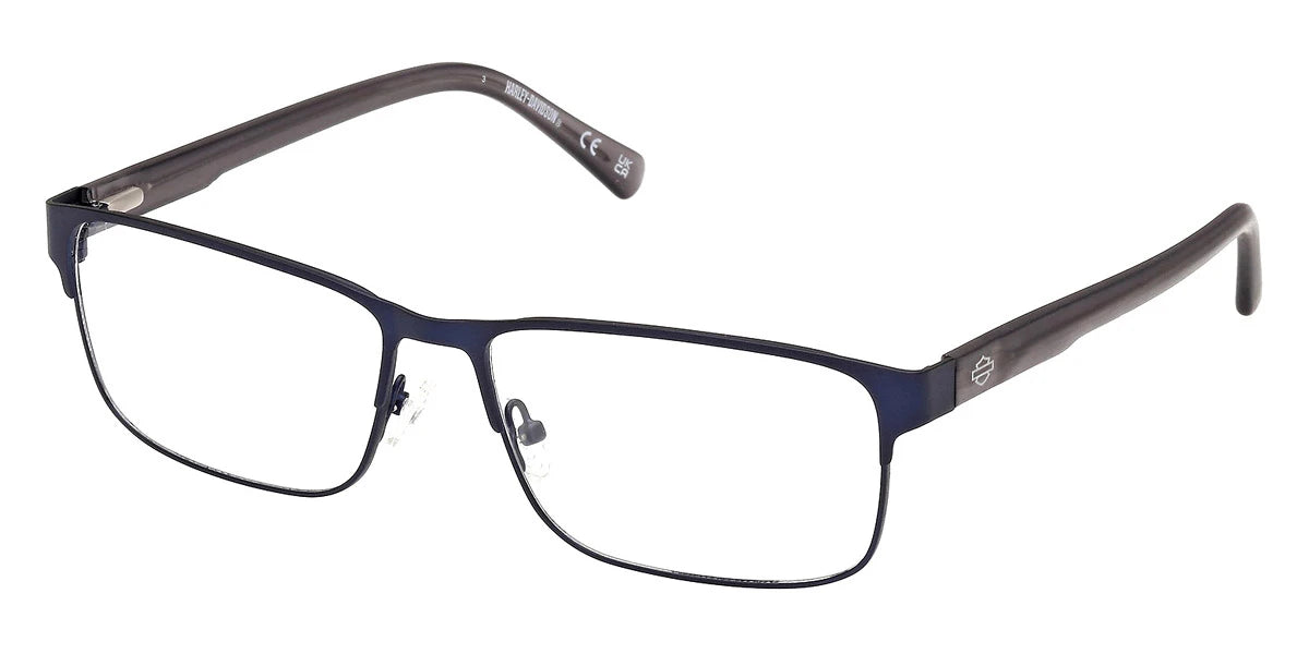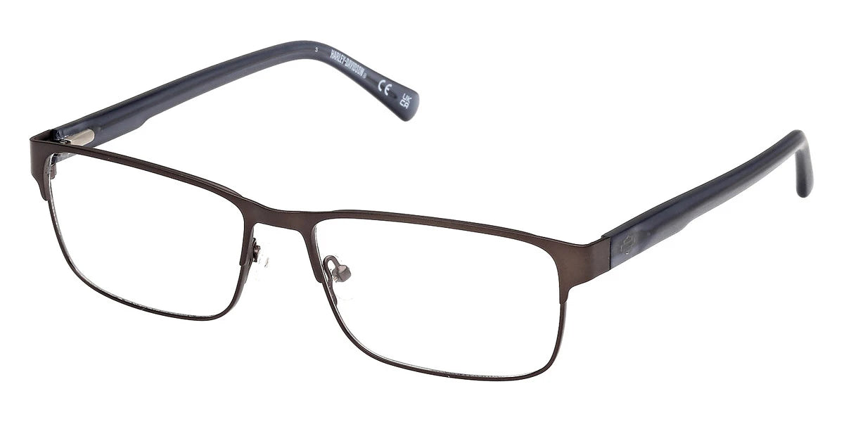 Matte Gunmetal/Matte Blue (009) Eyeglasses (HD50062 009 57) by Harley-Davidson™. Size: 57-16-145, Shape: Rectangle, Material: Plastic.