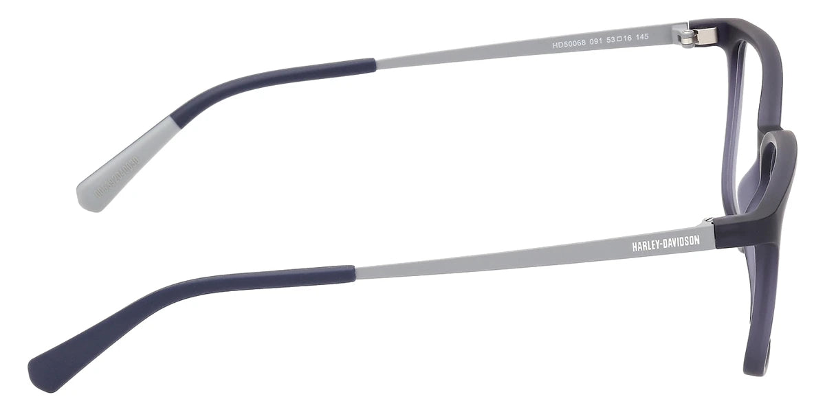 Matte Gray/Matte Blue (020) Eyeglasses (HD50068 020 53) by Harley-Davidson™. Size: 53-16-145, Shape: Square, Material: Injected.