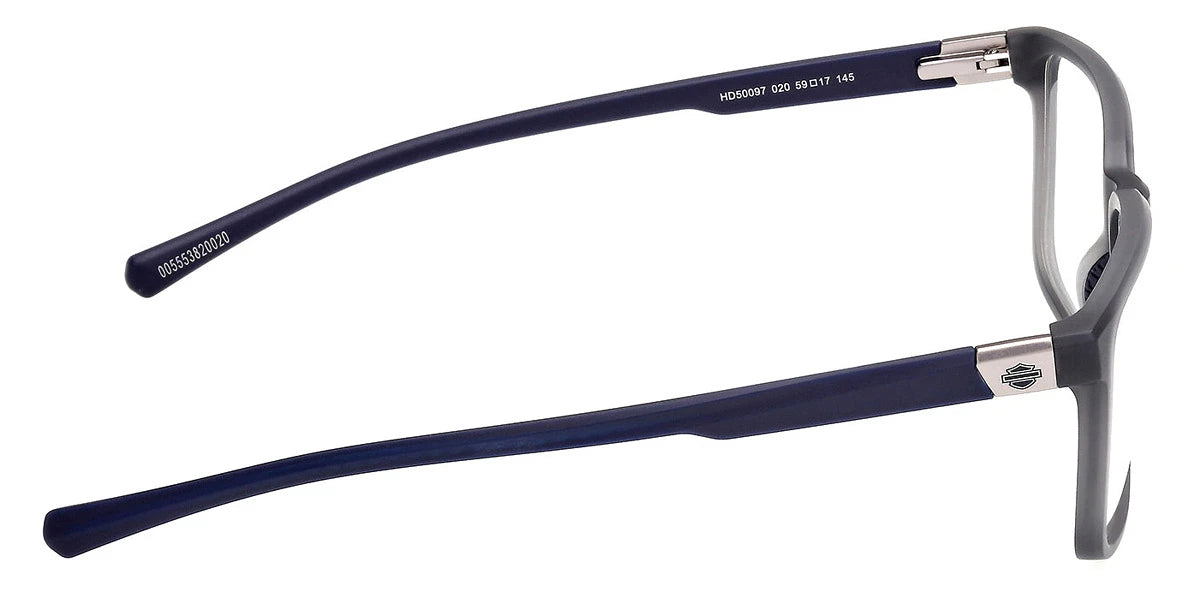 Matte Gray/Matte Blue (091) Eyeglasses (HD50097 091 59) by Harley-Davidson™. Size: 59-17-145, Shape: Square, Material: Injected.