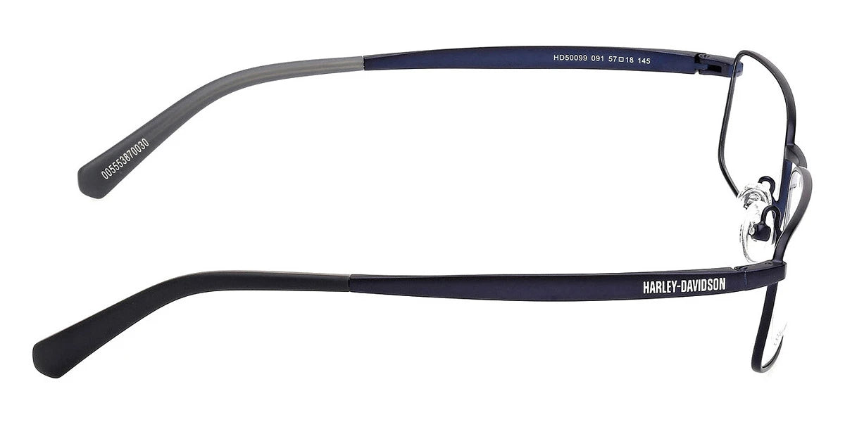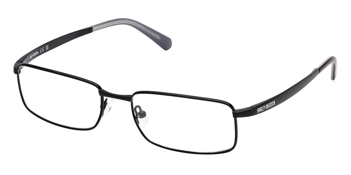 Matte Black (002) Eyeglasses (HD50099 002 57) by Harley-Davidson™. Size: 57-18-145, Shape: Rectangle, Material: Metal.