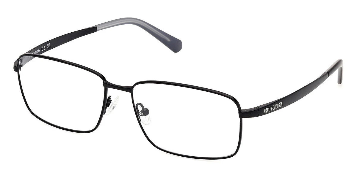 Matte Black/Matte Gunmetal (002) Eyeglasses (HD50100 002 59) by Harley-Davidson™. Size: 59-16-145, Shape: Square, Material: Metal.