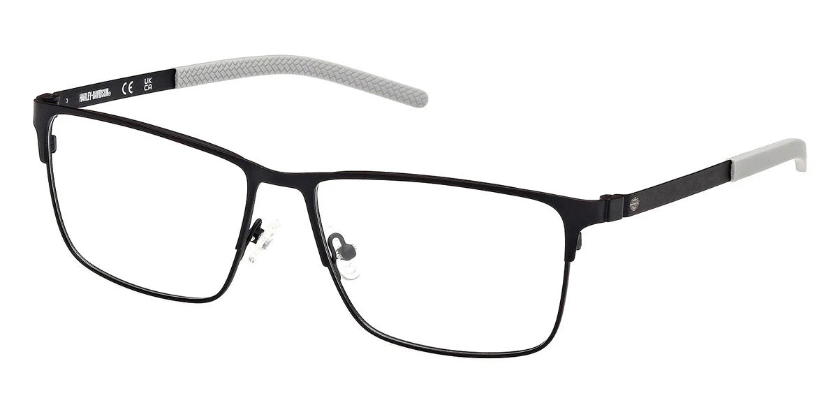 Matte Black/Matte Gray (002) Eyeglasses (HD50102 002 58) by Harley-Davidson™. Size: 58-16-145, Shape: Square, Material: Metal.