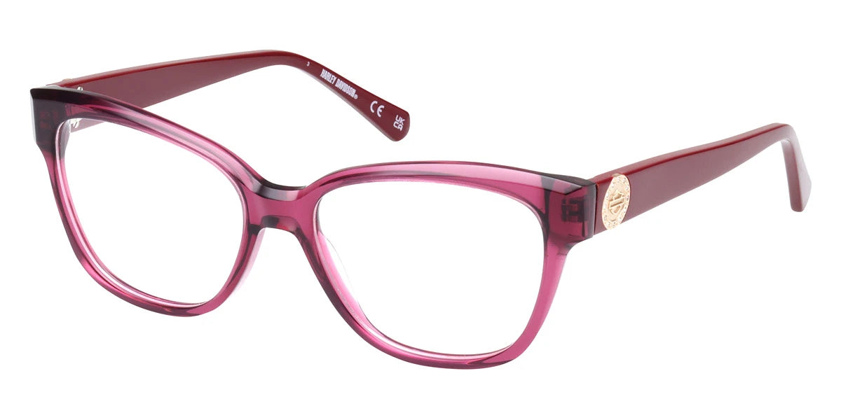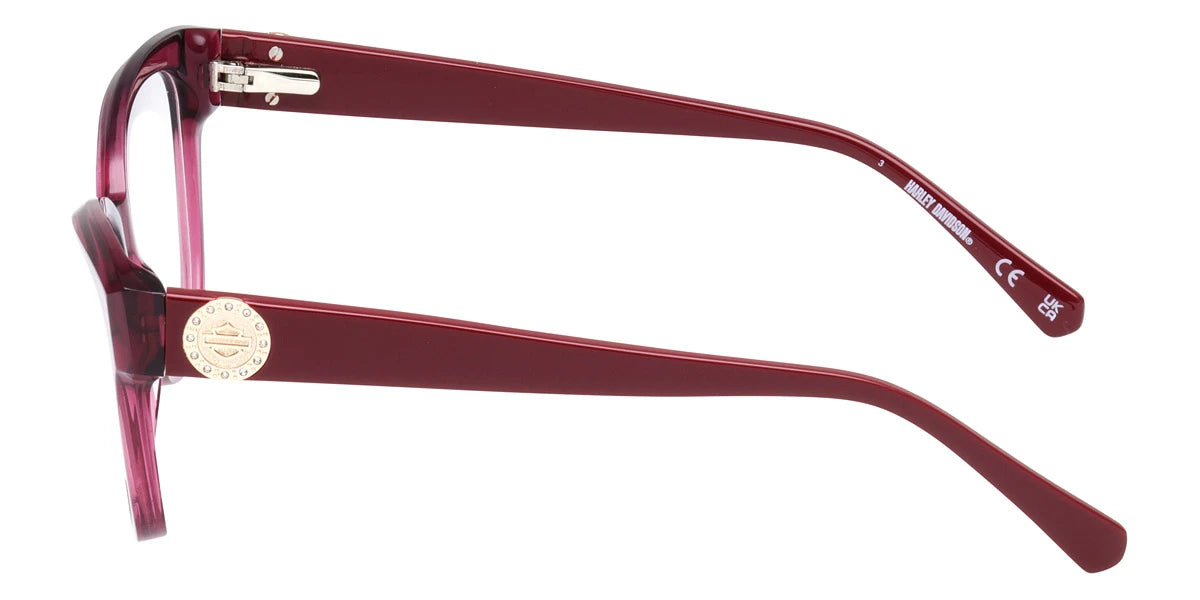 Shiny Bordeaux (069) Eyeglasses (HD50106 069 54) by Harley-Davidson™. Size: 54-16-140, Shape: Square, Material: Plastic.