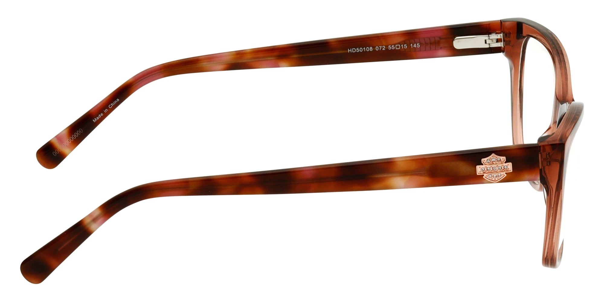 Shiny Light Pink (072) Eyeglasses (HD50108 072 55) by Harley-Davidson™. Size: 55-15-145, Shape: Rectangle, Material: Plastic.