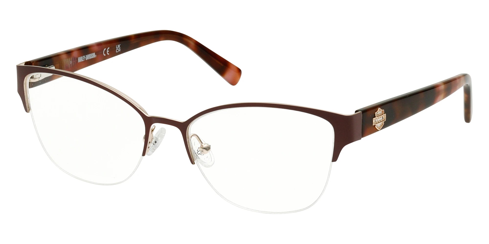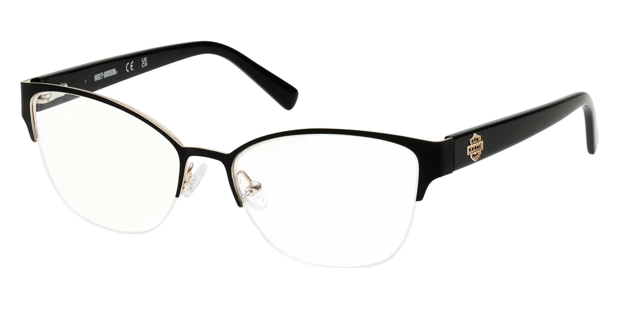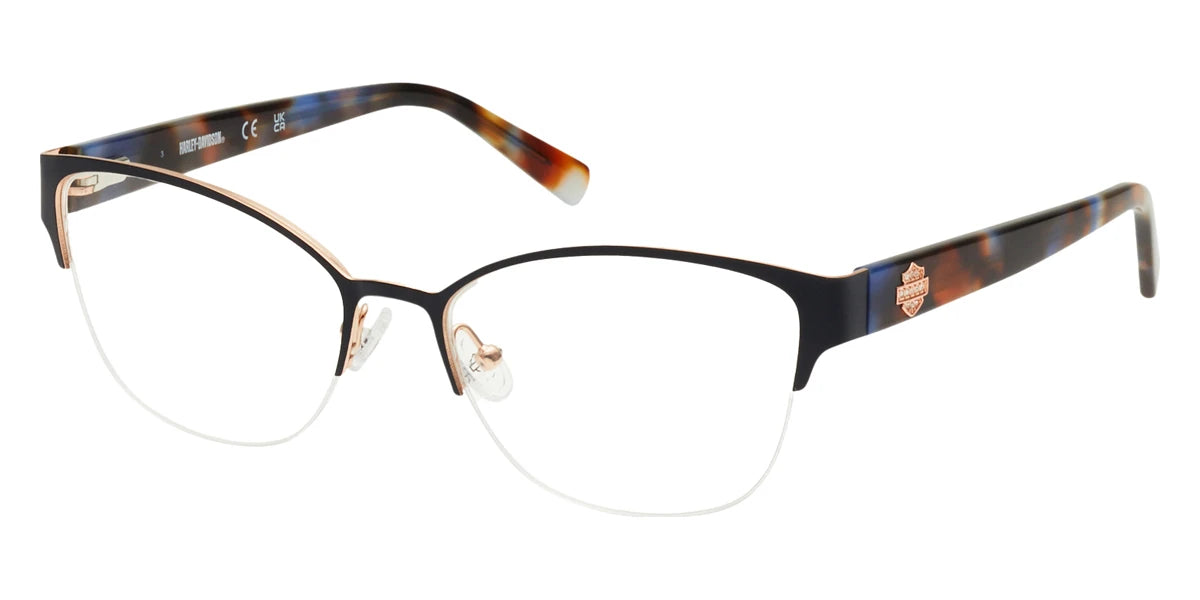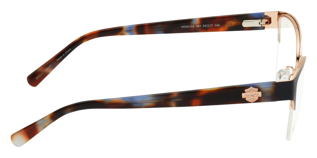 HD50109 Eyeglasses by Harley-Davidson™. The square shape design feature a semi rimless metal frame. This model is available in three different color combinations and sizes. For over 100 years, the Harley-Davidson brand has been a symbol of freedom and the embodiment of dreams about road and travel, about freedom of choice and the realisation of the most daring ideas and desires. The days when Harley-Davidson just sold motorcycles are long gone. Indeed, now under the name of the brand, clothes and accessories are produced, created according to the highest class in terms of the strength of materials and ease of use. These are key characteristics of the Harley-Davidson frames and sunglasses collections. Fashionable sporty glasses and models of the restrained classic style from a well-known brand provide reliable eye protection and a high level of comfort. Harley-Davidson sunglasses are a stylish accessory which looks cool not only for riding a motorcycle but also in everyday life.