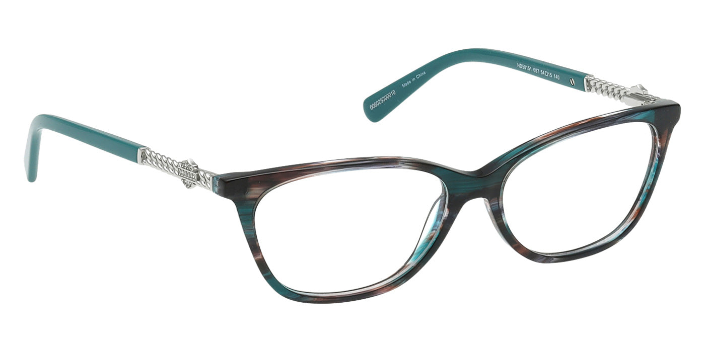 Bordeaux/Horn (069) Eyeglasses (HD50151 069 54) by Harley-Davidson. Size: 54-15-140, Shape: Rectangle, Material: Plastic.