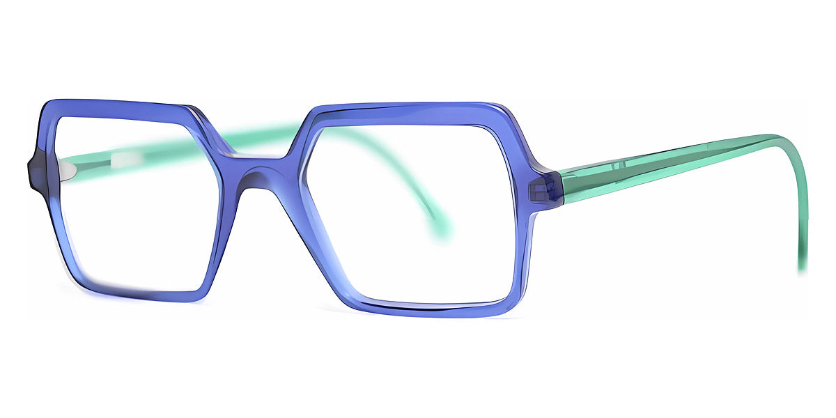 Transparent Blue/Green Transparent (8204B) Eyeglasses (GLUCK 8204B 48) by Henau™. Size: 48-19-140, Shape: Square, Material: Acetate.