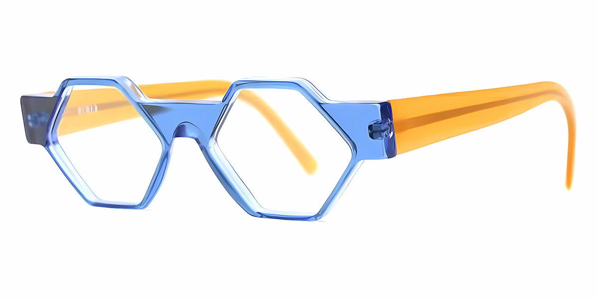 Light Blue/Yellow (0H03) Eyeglasses (HEXAGONO 0H03 48) by Henau™. Size: 48-17-145, Shape: Geometric, Material: Acetate.