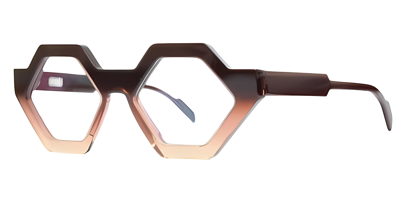 HEXAPLUS Eyeglasses by Henau™. The geometric shape design feature a full rim acetate frame. This model is available in five different color combinations and sizes. One hallmark of Henau's eyewear is its commitment to refined forms. Every pair of glasses, whether sunglasses or prescription frames, is a testament to precision and craftsmanship. The frames are meticulously shaped to flatter the wearer's face, accentuating their unique features and enhancing their style. The brand's commitment to the highest quality materials ensures not only a comfortable fit but also durability and longevity. Henau's geometric abstraction in design is a visual treat for connoisseurs of fashion and art alike. The eyewear is a canvas for bold, angular shapes and intricate patterns that exude a sense of avant-garde elegance. This distinctive aesthetic is a tribute to the founders' dedication to pushing the boundaries of conventional eyewear, creating pieces that transcend mere function to become wearable works of art. Perhaps the most defining characteristic of Henau's eyewear is its timelessness. While fashion trends come and go, Henau frames remain enduring classics. The brand's designs are not bound by the fleeting whims of the fashion world; instead, they possess a timeless quality that ensures they remain relevant and stylish year after year.