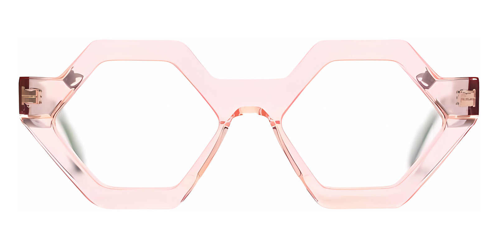 Transparent Pink/Burgundy (5070) Eyeglasses (HEXAPLUS 5070 55) by Henau™. Size: 55-19, Shape: Geometric, Material: Acetate.