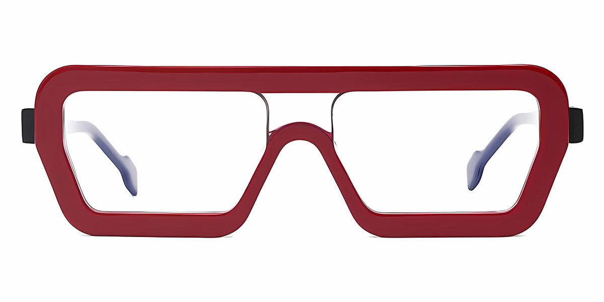 Red/Black (RDBL) Eyeglasses (KONA RDBL 55) by Henau™. Size: 55-17, Shape: Square, Material: Acetate.