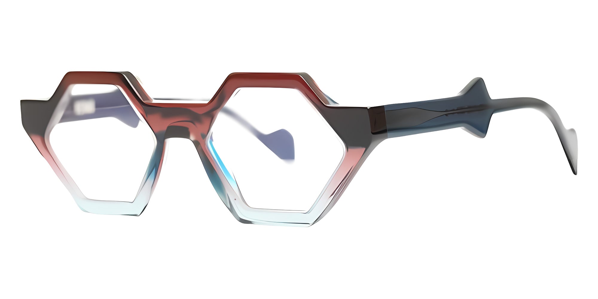 The geometric shape design feature a full rim acetate frame. This model is available in two different color combinations and sizes. One hallmark of Henau's eyewear is its commitment to refined forms. Every pair of glasses, whether sunglasses or prescription frames, is a testament to precision and craftsmanship. The frames are meticulously shaped to flatter the wearer's face, accentuating their unique features and enhancing their style. The brand's commitment to the highest quality materials ensures not only a comfortable fit but also durability and longevity. Henau's geometric abstraction in design is a visual treat for connoisseurs of fashion and art alike. The eyewear is a canvas for bold, angular shapes and intricate patterns that exude a sense of avant-garde elegance. This distinctive aesthetic is a tribute to the founders' dedication to pushing the boundaries of conventional eyewear, creating pieces that transcend mere function to become wearable works of art. Perhaps the most defining characteristic of Henau's eyewear is its timelessness. While fashion trends come and go, Henau frames remain enduring classics. The brand's designs are not bound by the fleeting whims of the fashion world; instead, they possess a timeless quality that ensures they remain relevant and stylish year after year.