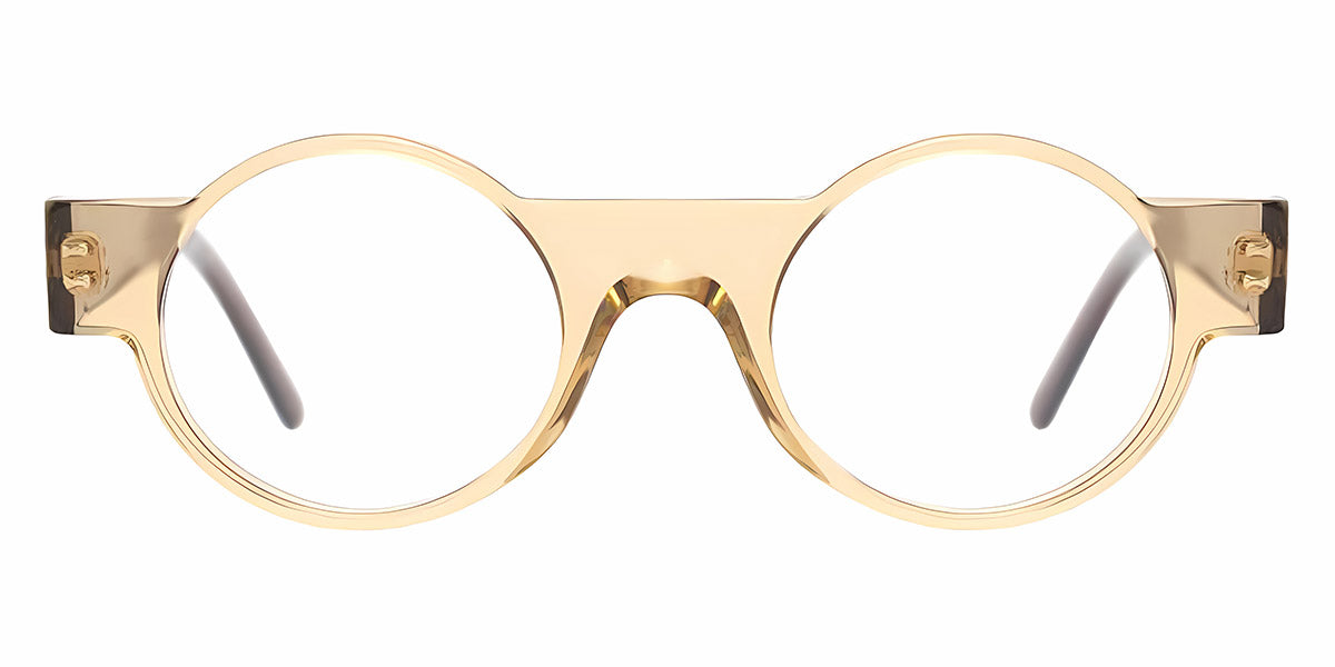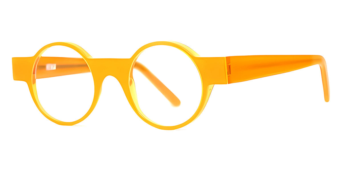 ODORONO Eyeglasses by Henau™. The round shape design feature a full rim acetate frame. This model is available in eighty four different color combinations and sizes. This model goes beyond the ordinary, showcasing a creative and extraordinary design that captures the imagination. With ODORONO, Henau invites wearers to explore the boundaries of style and embrace a new era of fashion-forward eyewear. It features an innovative design that pushes the envelope with its use of unconventional materials and distinctive shapes. Its aesthetic is a testament to Henau's commitment to avant-garde design, making it a statement piece for those who appreciate the extraordinary.