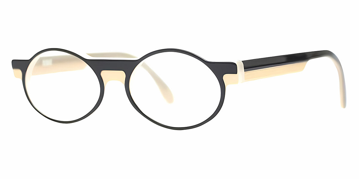 Black/White/Beige (A88) Eyeglasses (PANONO A88 48) by Henau™. Size: 48-16, Shape: Oval, Material: Acetate.